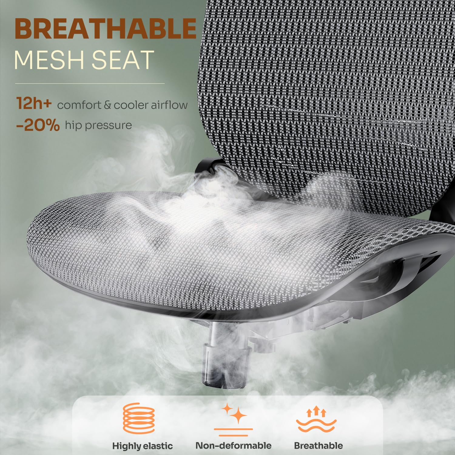 GABRYLLY Ergonomic Office Chair, High Back Home Desk Chair with Headrest, Flip-Up Arms, 90-120° Tilt Lock and Wide Cushion, Big and Tall Mesh Chairs for Man Woman, Grey Task Chair