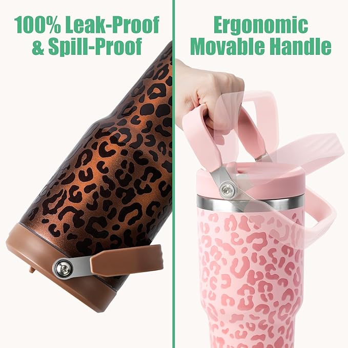 30 oz Flip Straw Tumbler, Stainless Steel Vacuum Insulated Tumblers with Handles, Reusable Insulated Water Bottle for Home, Office, Leakproof, Fit in Cup Holder