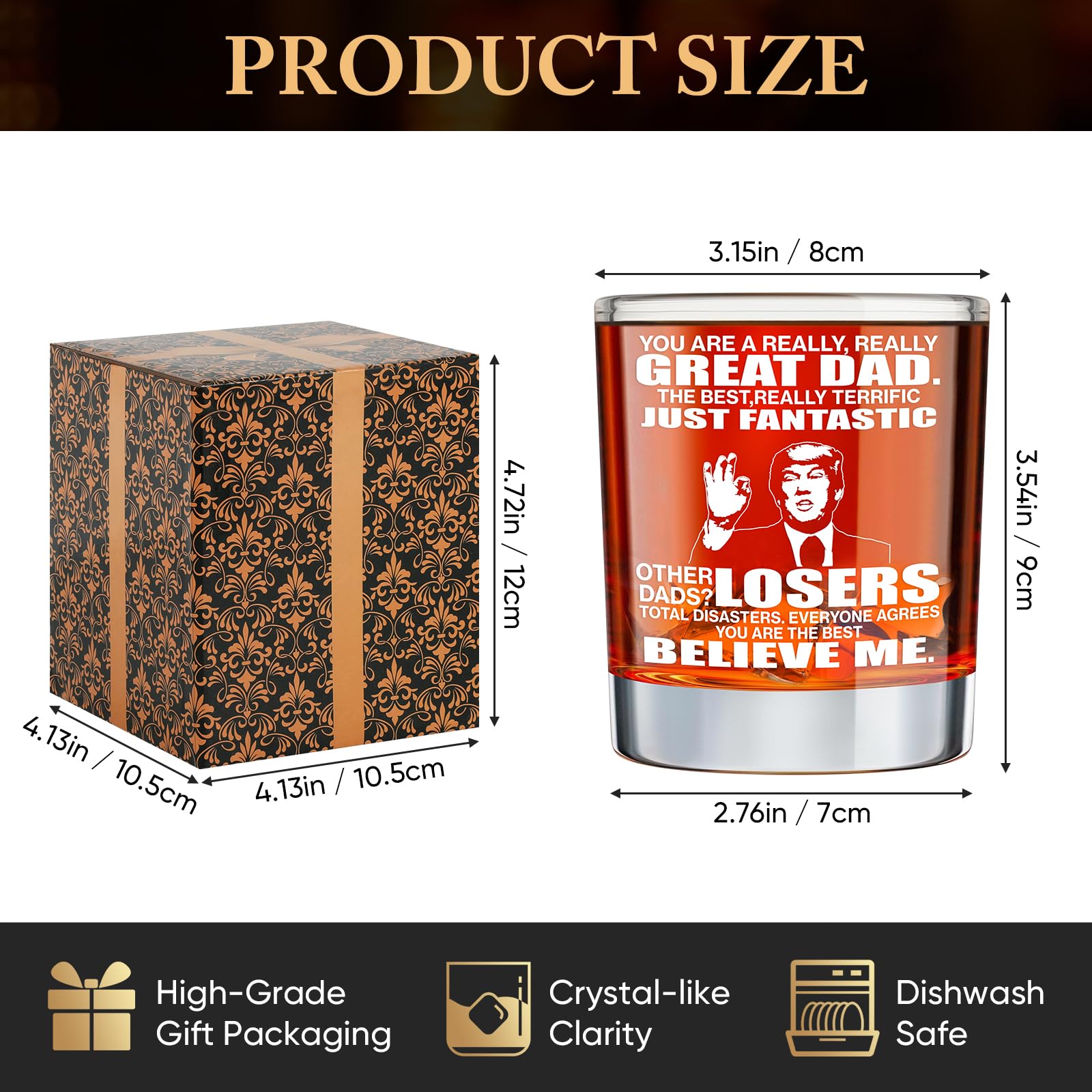 Gifts for Dad from Daughter Son Wife Fathers Day Birthday Christmas Unique Gift for Papa Cool Gifts for Daddy 11oz Whiskey Rock Glass