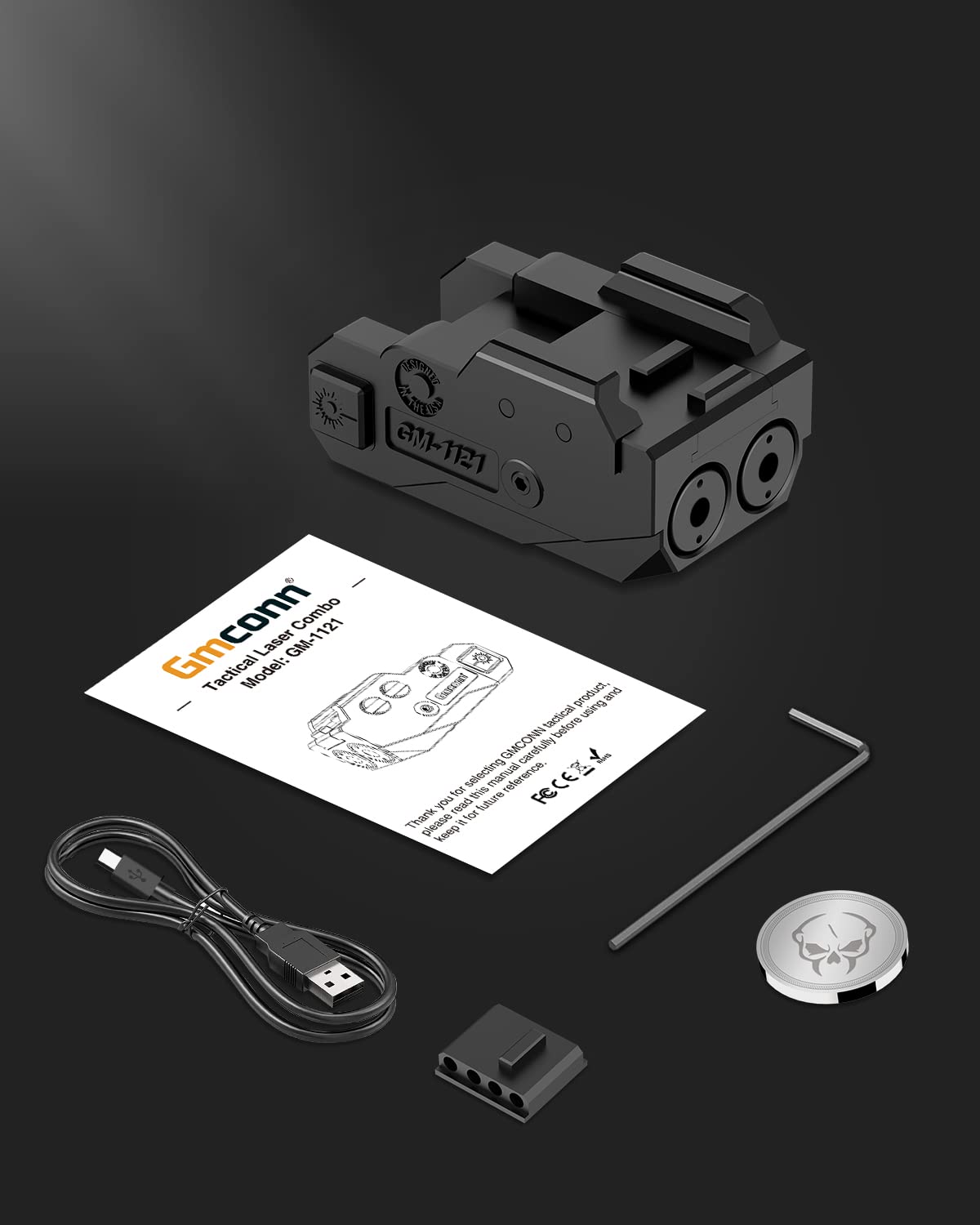 Gmconn Blue and Green Dual Laser Sight for Pistol with a Rail, Low Profile Blue Green Beams for Full Size or Compact Guns, Rechargeable, (Laser Output <5mW, Class IIIA)