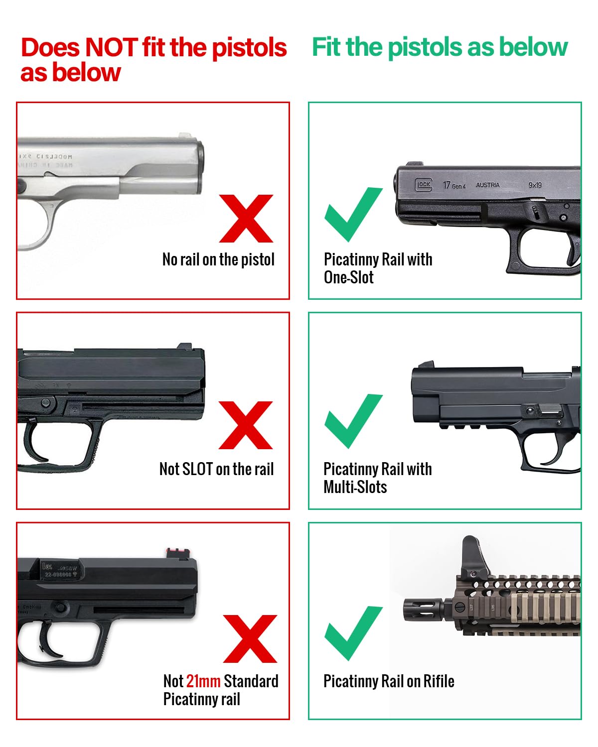 - 【Slidable Rail System】Slidable rail system offers your the best position freely. Also makes the dual blue green laser sight be compatible with G2C /G3C/ Glocks w/ a rail perfectly. No Sticking out for compact.