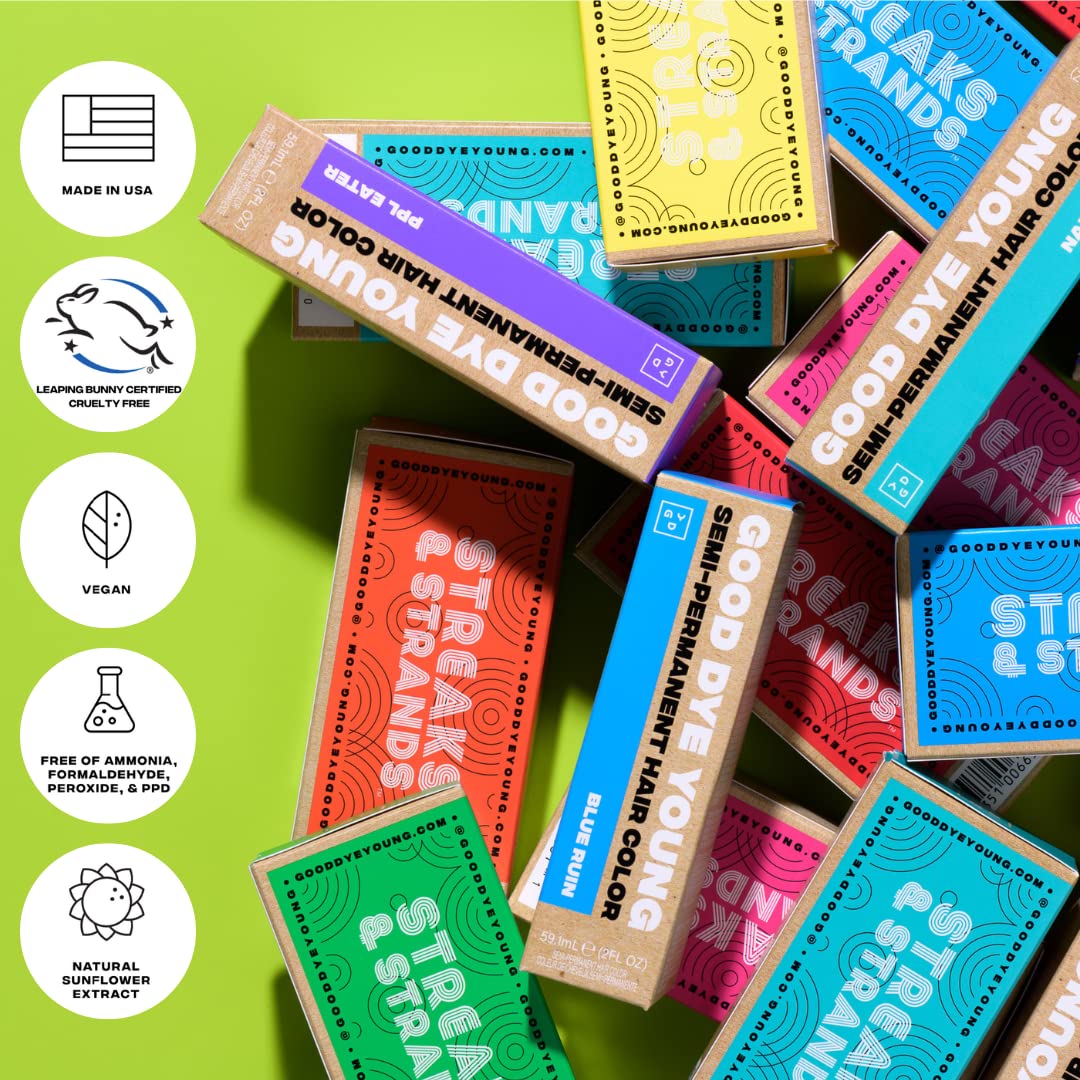 Good Dye Young Streaks and Strands Semi-Permanent UV-Protective Conditioning Hair Color (Blue Ruin) - PPD-Free, Cruelty-Free & Vegan, Lasts 15-24+ Washes