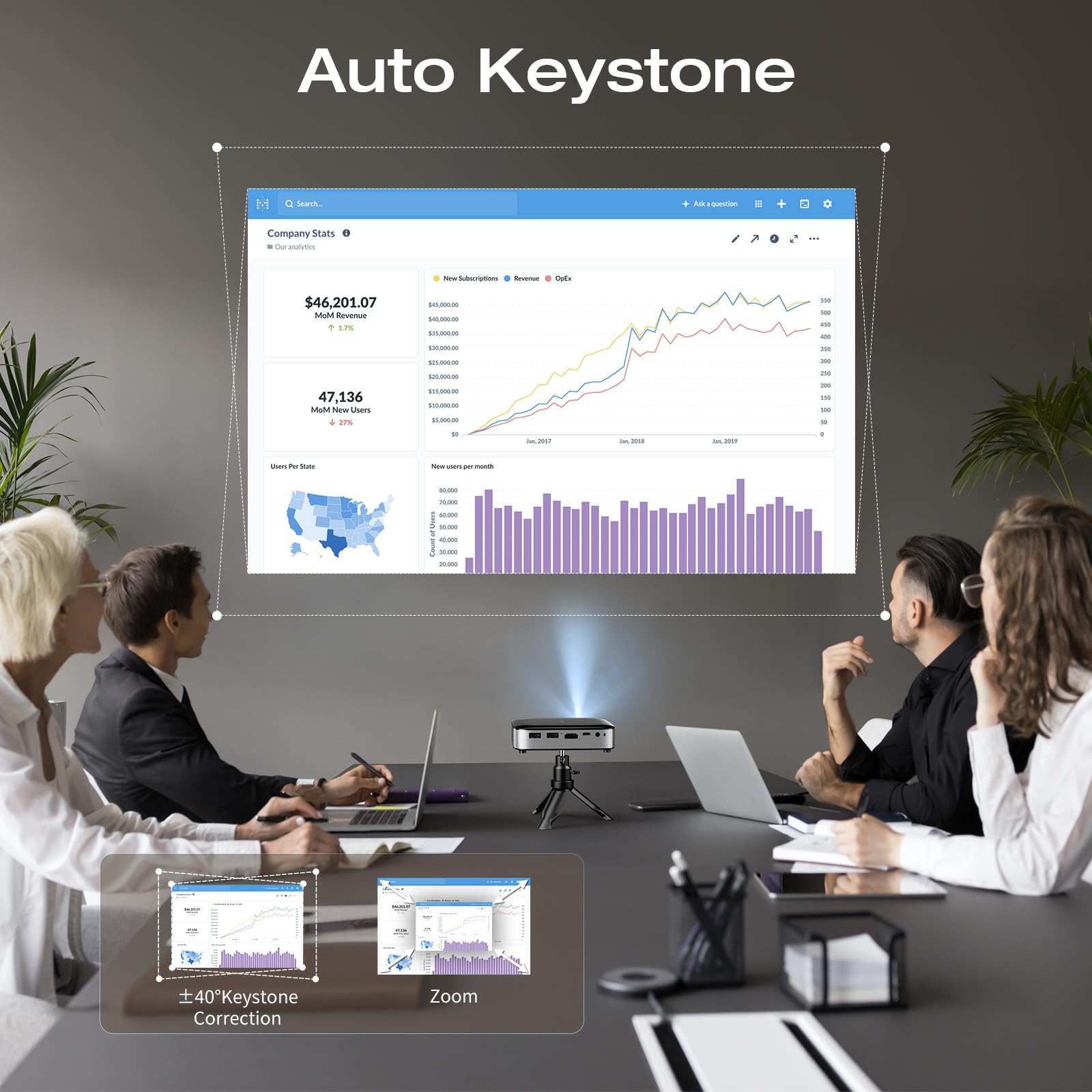 - Pocket-Sized and Automatic Keystone Correction-The pico projector measures just 5.9x3.9x0.9 inches and weighs approximately 2.6 pounds, making it impressively compact and incredibly portable, which you can take it with you anywhere and at any time. This smart projector features automatic vertical ±45° keystone correction, ensuring that you never have to worry about the image appearing blurry or distorted. This feature helps to correct any discrepancies quickly and seamlessly.