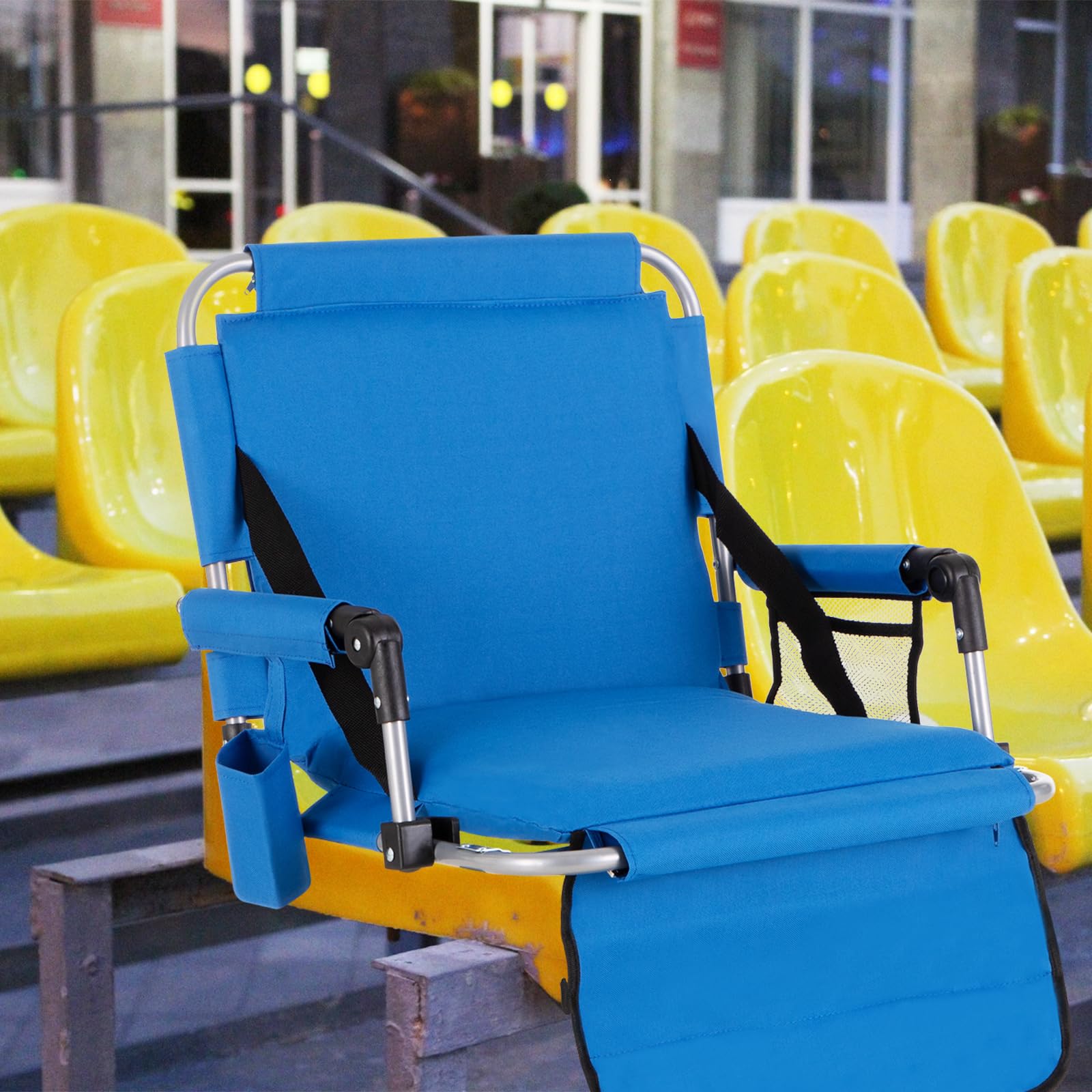 • 【Widely Use】This Waterproof Bleacher Chair can be used in a variety of outdoor activities including ceremonies, gyms, parks, and stadiums. And can be carried in two ways: on your shoulder or in your hands. Its lightweight and compact design makes carrying effortless and space saving.