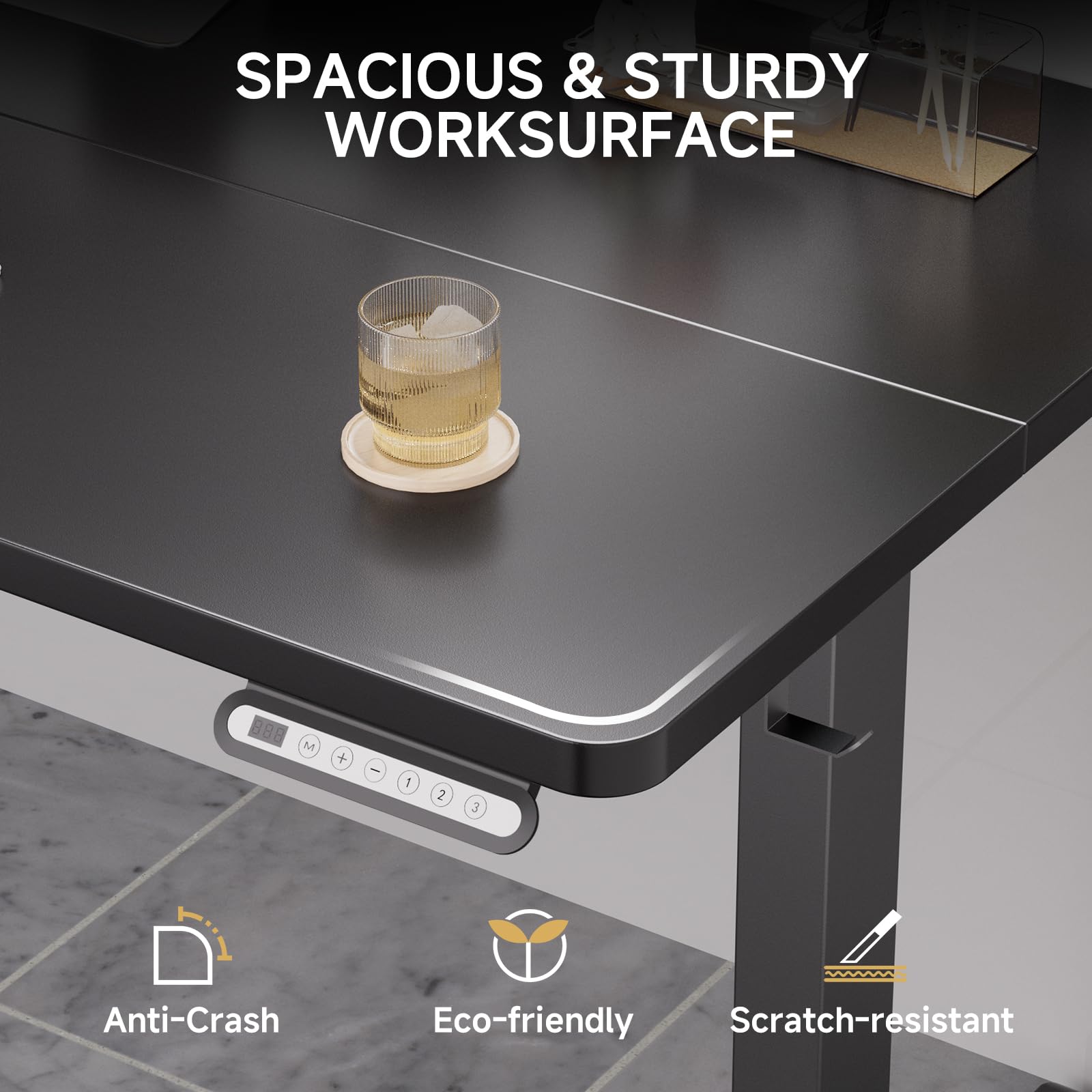 - LED CONTROL PANEL WITH MEMORY PRESETS: The Stand up desk features an intuitive LED control panel with three programmable memory settings, allowing you to easily save and switch between your preferred heights for consistent comfort throughout the day. The electric standing desk motor system also includes safety lock, anti-collision, and overheat protection functions.