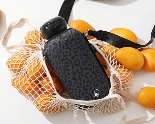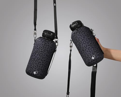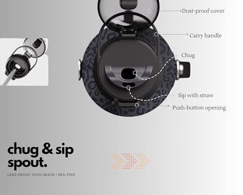 H2O Capsule Half Gallon Insulated Water Bottle With Straw - Stainless Steel Thermos Water Bottle With Sipping/Chugging Lid & Shoulder Strap For Storage - 64 oz Vacuum Flask, Hot Cold (Black Leopard)