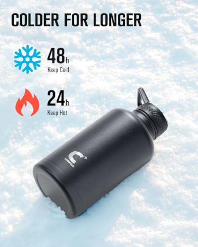 - Food-Grade Stainless Steel: The body of the half gallon water bottle is made from 18/8 stainless steel coated with anti-slip powder, totally oxidative-resistant, rust-proof and flavor-transfer-resistant. It is the perfect metal water bottle for daily drinking.