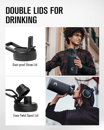 - Versatile Lid Combo: You can use the straw lid with just one hand, or use the spout lid for large gulps of drink. The large water bottle with two 100% leak-proof lids meets your all day needs.