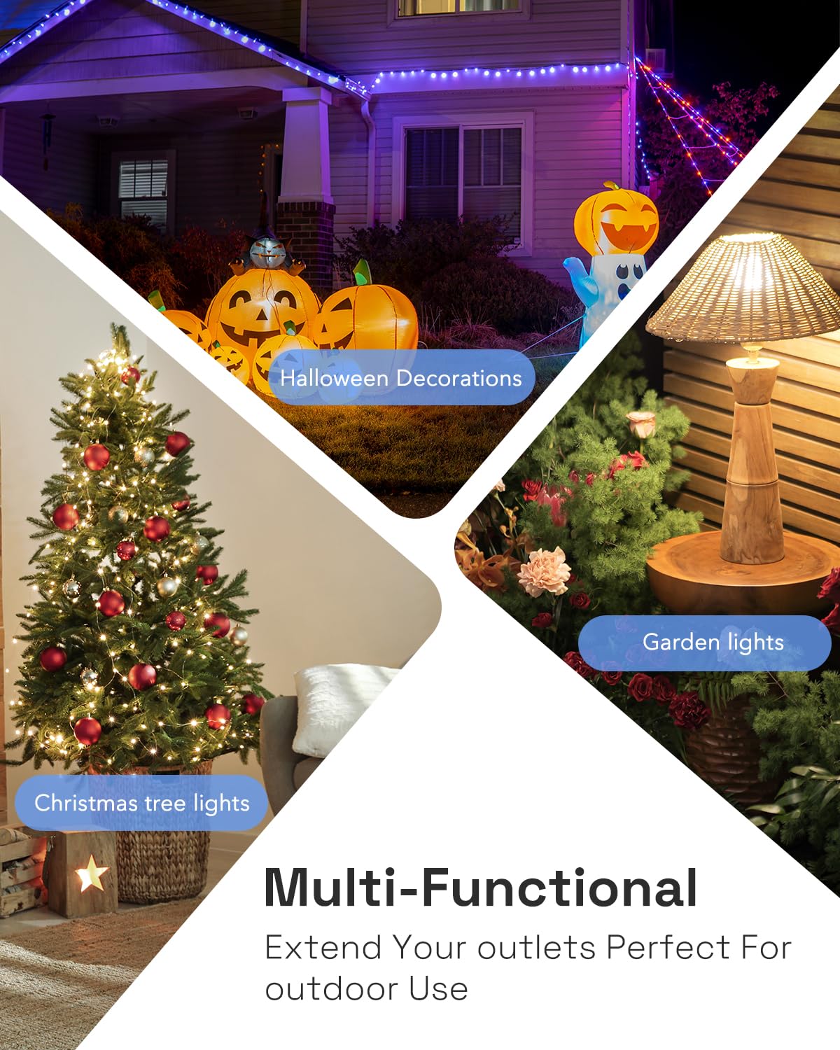 - 【Enhance Your Outdoors】 Our Outdoor Smart Plug is perfect for lighting up holiday decorations, Halloween/Christmas decor, and fountains. This yard stake plug is versatile for gardens, patios, and more, with a robust 125V, 15A capacity. It's durable, easy to use, and backed by a 1-year warranty, making it ideal for all your outdoor lighting needs.
