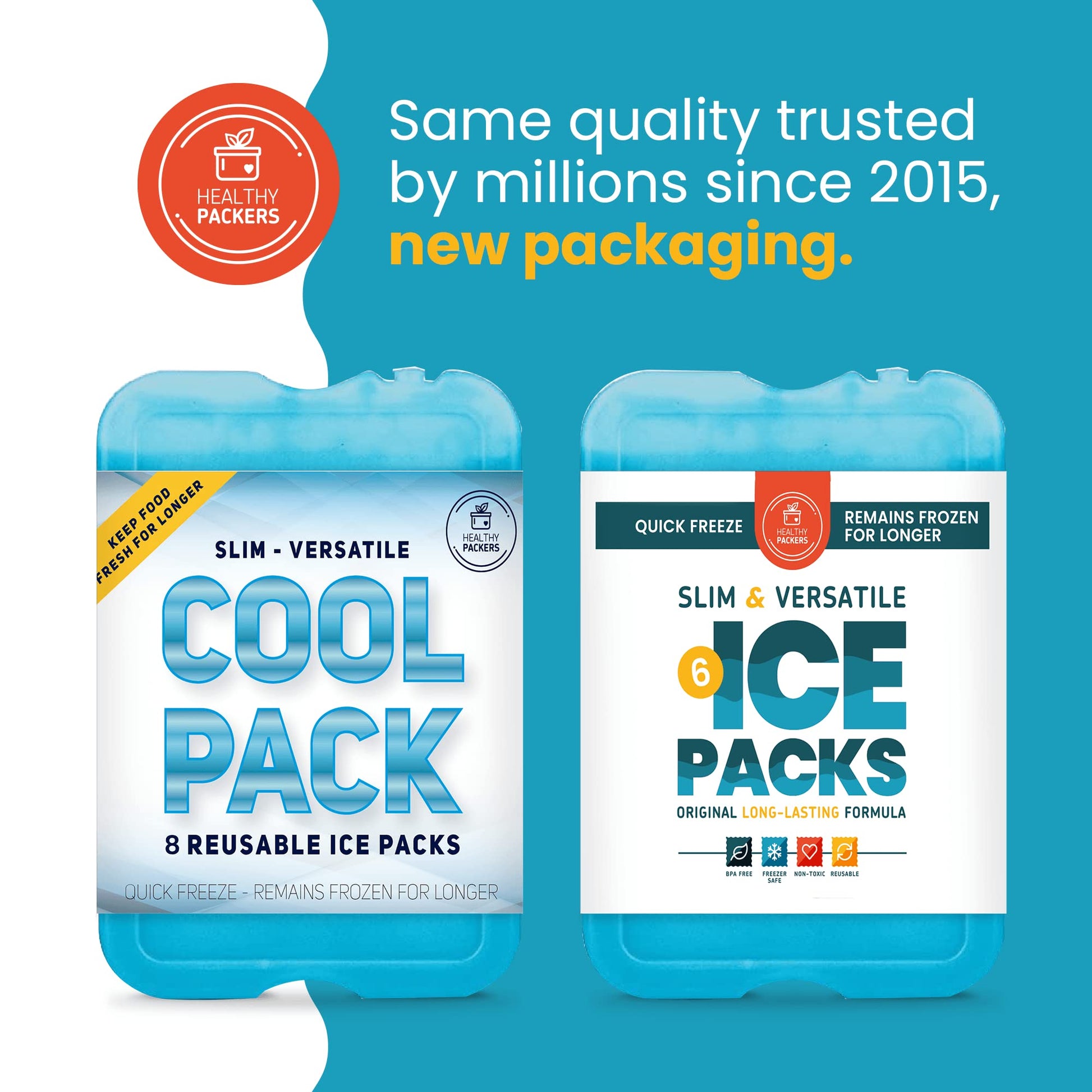 Healthy Packers Ice Packs for Lunch Bags - Original Cool Pack | Slim & Long-Lasting Reusable Ice Pack for Lunch Box, Lunch Bag and Cooler | Freezer Packs for Coolers (Set of 6)