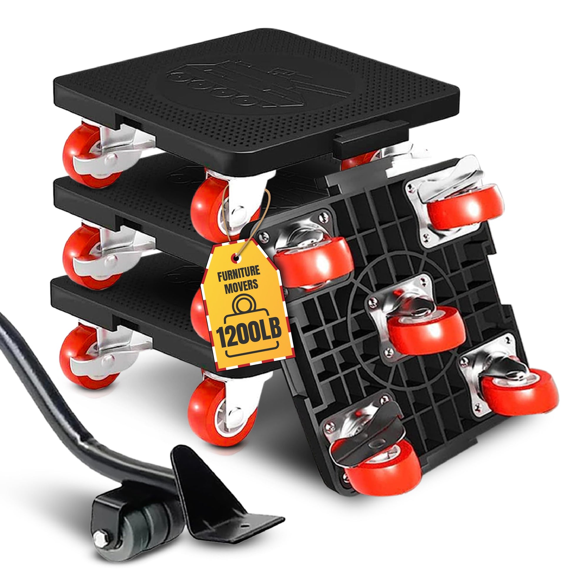 Heavy-Duty Furniture Movers Set - 4-Pack with 360° Rotating Wheels, 1200lbs Capacity - Includes Lifter and Dolly Kit for Sofas, Fridges, and More