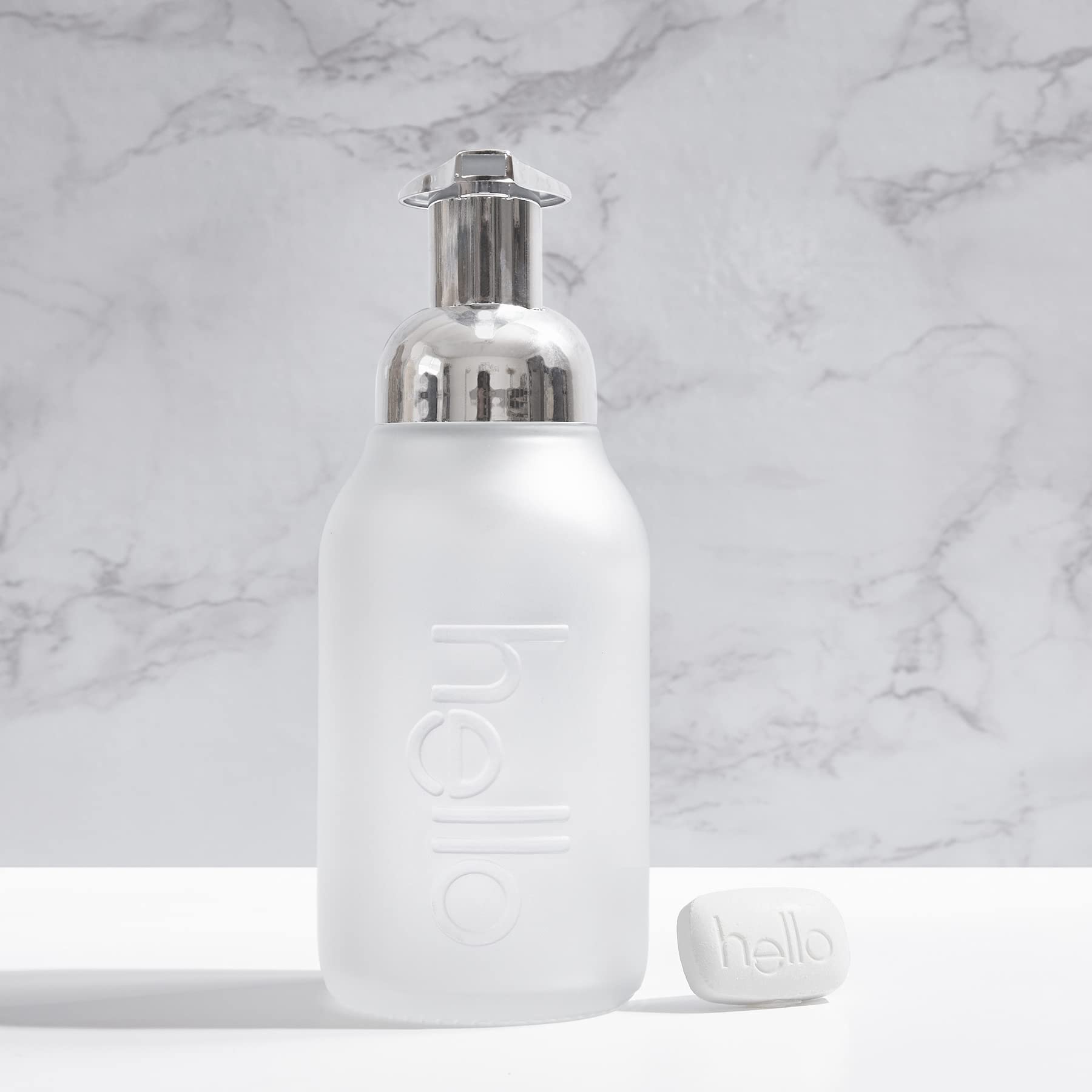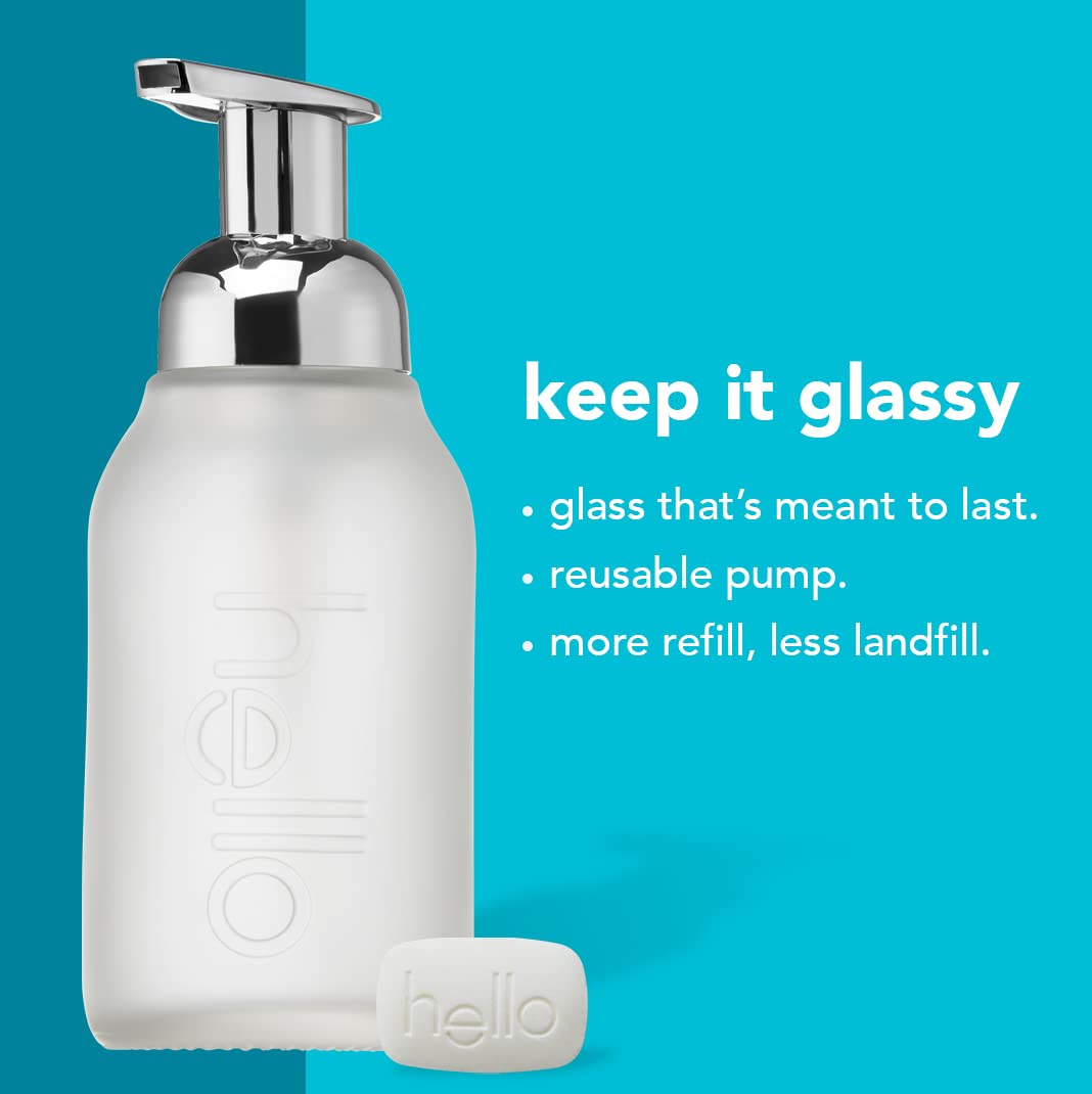 Details: more refill, less landfill. our plant based foaming hand wash tablets are friendly to the environment and your hands. using a water free refill tablet, instead of bulky soap refills, reduces your carbon footprint and saves money. and that's not all, we thoughtfully crafted our tablet with natural fragrances and moisturizing ingredients, for a super-amaze skin feel. simply drop one tablet in the refillable glass bottle, and fill with warm water where indicated on the bottle. give it a little shake and just like that you've created hello foaming hand wash at home. this fantabulous kit includes one reusable glass bottle and 1 foaming hand wash tablet in the aloe + sea mineral scent. hello foaming hand wash tablets are dermatologist tested for sensitive skin, biodegradable, cruelty free, and contain no dyes, sls/sulfates, or harsh preservatives.
