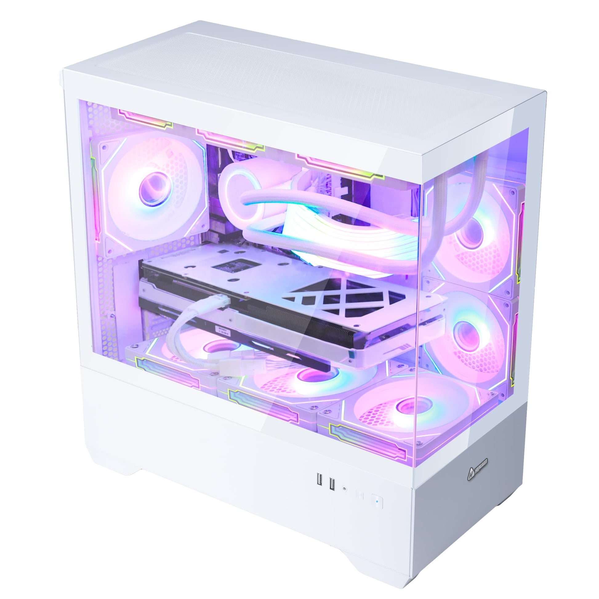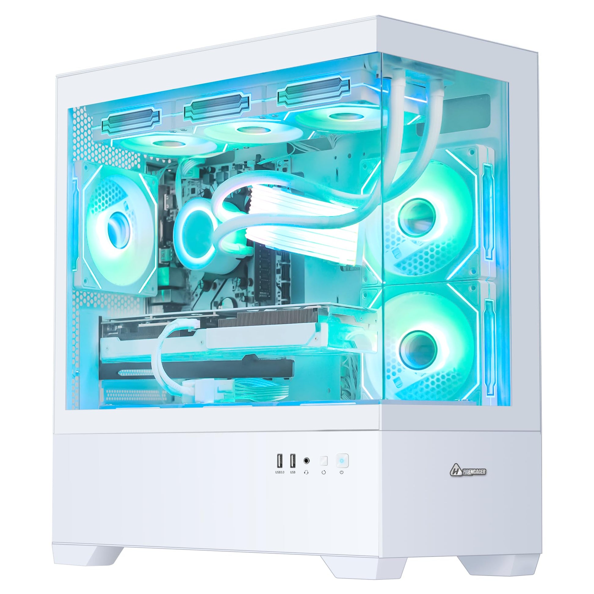HOENGAGER Superview Gaming PC Desktop Computer - AMD Ryzen 7 5700X 3.4 GHz 8 Core, RTX 4060 8G, 32GB DDR4 RAM 3200, 1TB M.2 PCIE SSD, 650W PSU, 360mm AIO, 11AC Wi-Fi, Windows 11 Pro 64-bit, White