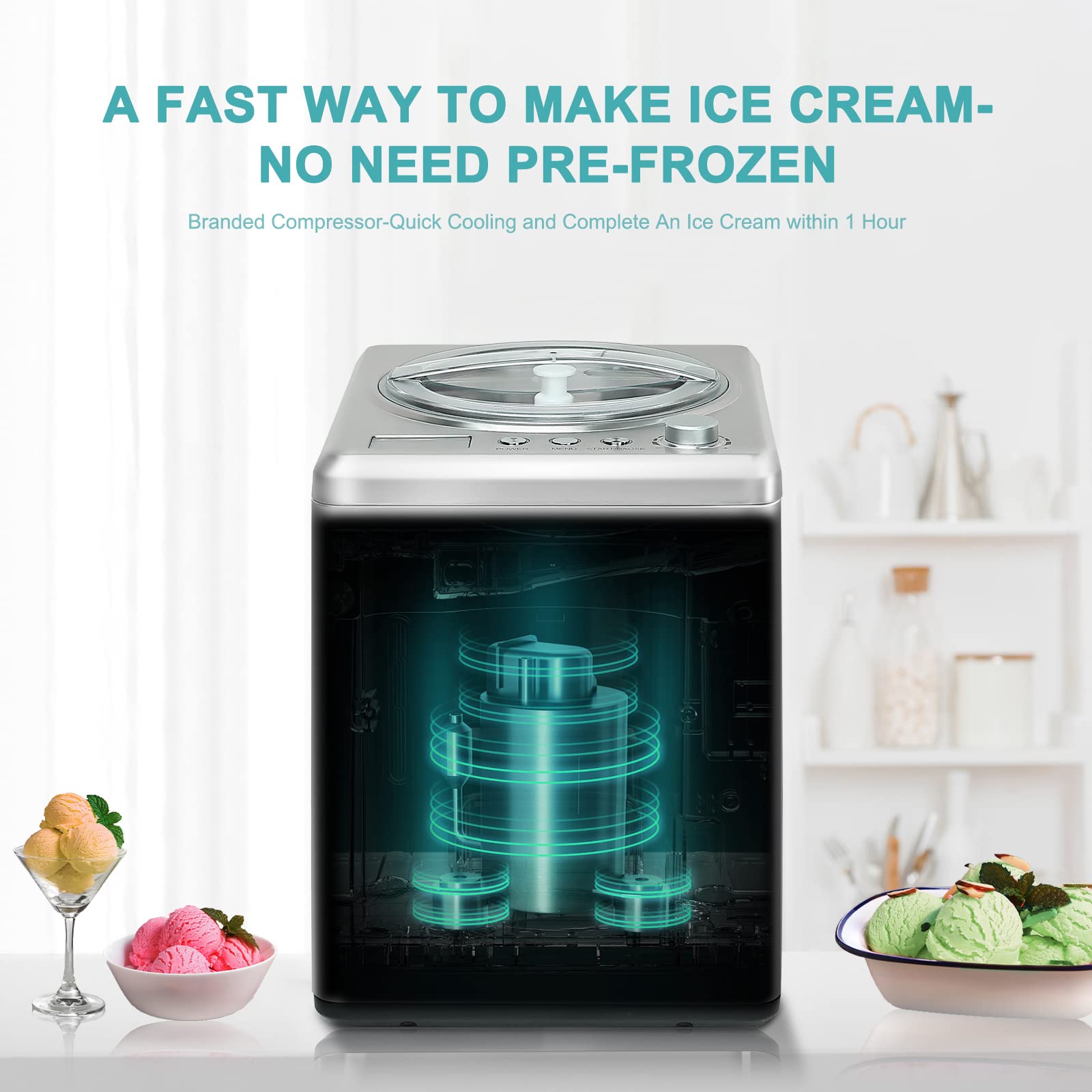Homtone 2.64 QT Ice Cream Maker, No pre-Freezing & Large Capacity Automatic Ice Cream Machine with Compressor, Easy Operate & Clean, Keep Cooling for 2H, All Stainless Steel, LCD Digital Display