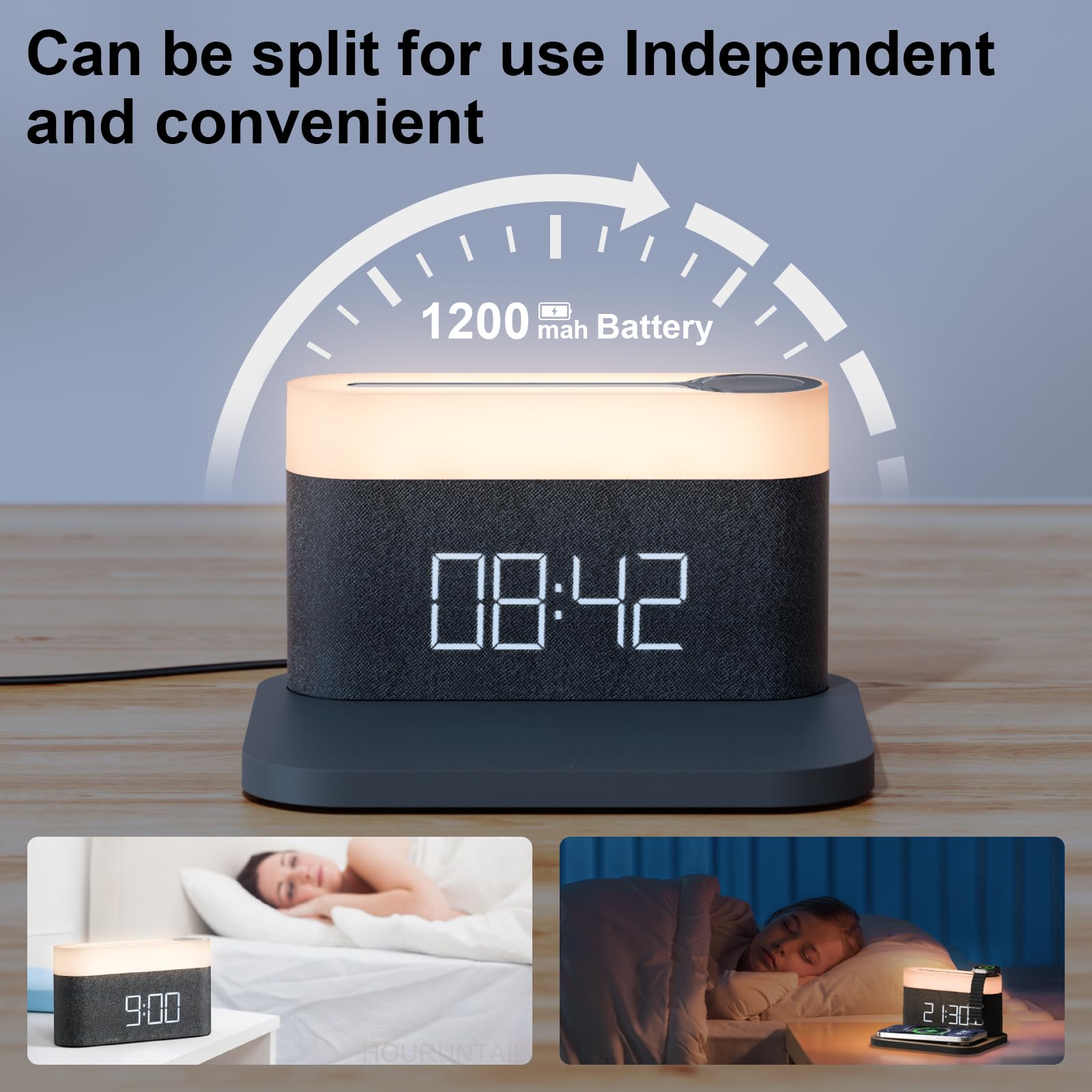 - The alarm clock and the bottom plate can be separated.Equipped with a USB power cord for reliable and stable performance. Please note that this clock does not support battery operation. does not support battery operation.