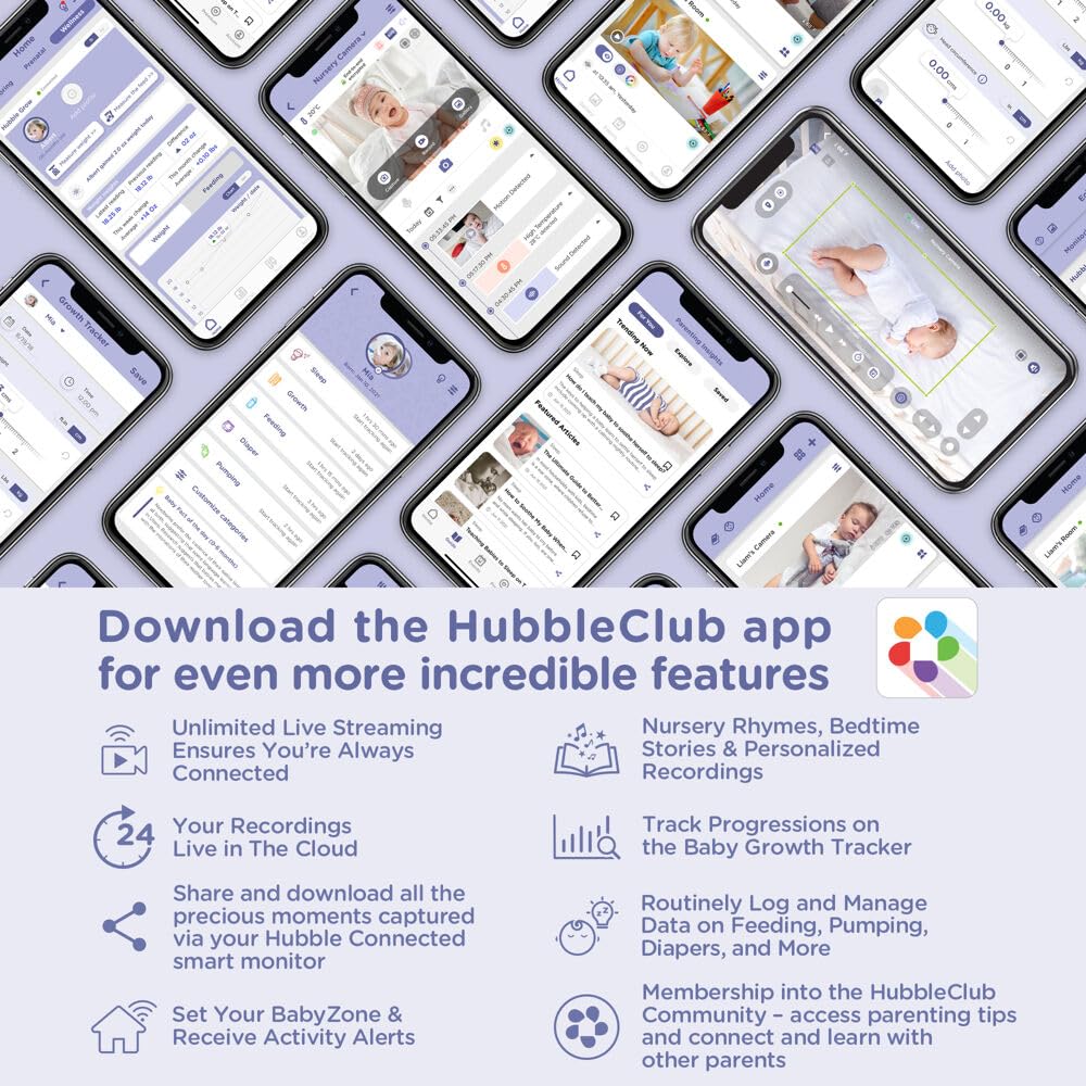 • Double the Convenience: View your baby's live stream in the way that suits you best by using the 5 inch touchscreen parent unit or the HubbleClub app on your smart device