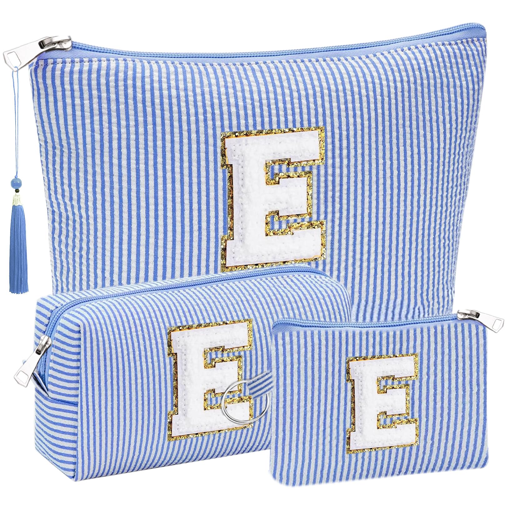 Initial Gifts Travel Cosmetic Makeup Pouch Bags Sets for Purse, 3pcs Stoney Clover Dupes Pouch Makeup Bag, Personalized Cosmetic Bags Set for Women, Make up Bag for Teen Girls 13 14 15 16 17 (M, Blue)