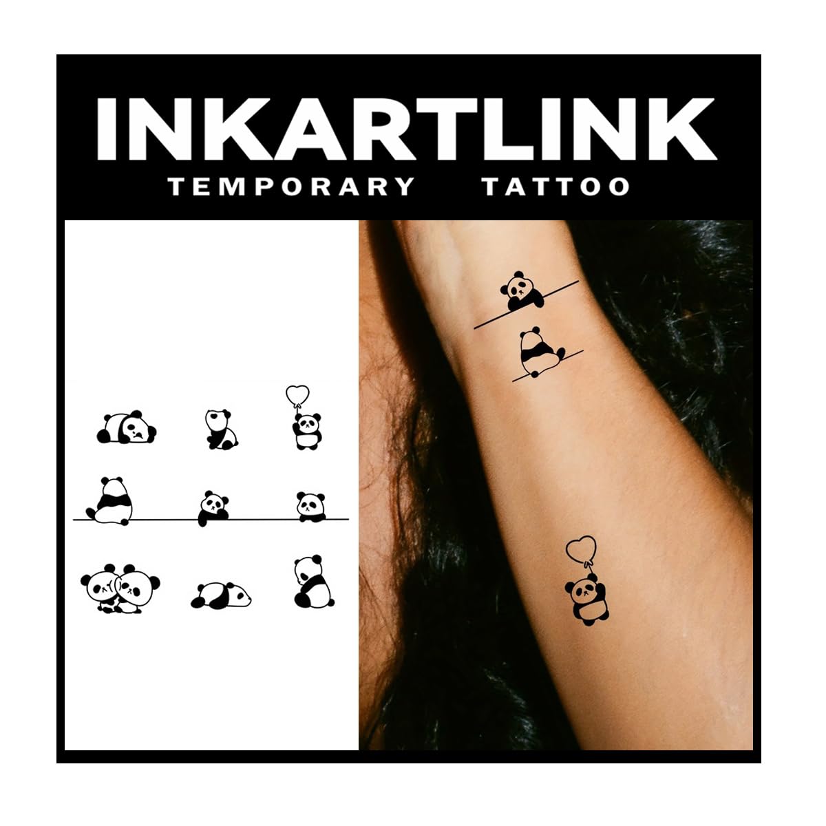 INKARTLINK Tattoo Tech, 2 Sheets Medium Semi Permanent Tattoo, Adult Art Design Temporary Tattoos, Lasts 1-2 Weeks, Waterproof, Realistic Look, No Adhesive, No Reflection (Panda)