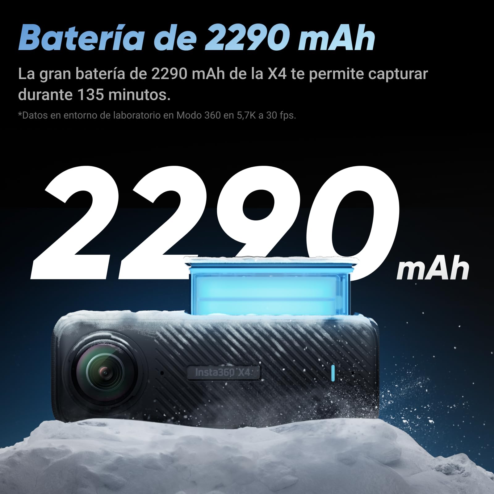 - IMPROVED 2290MAH BATTERY, FAST CHARGING - Compared to Insta360 X3, X4 offers 67% longer run time. Capture up to 135 minutes on one charge, with fast charging to get back out there faster than ever.