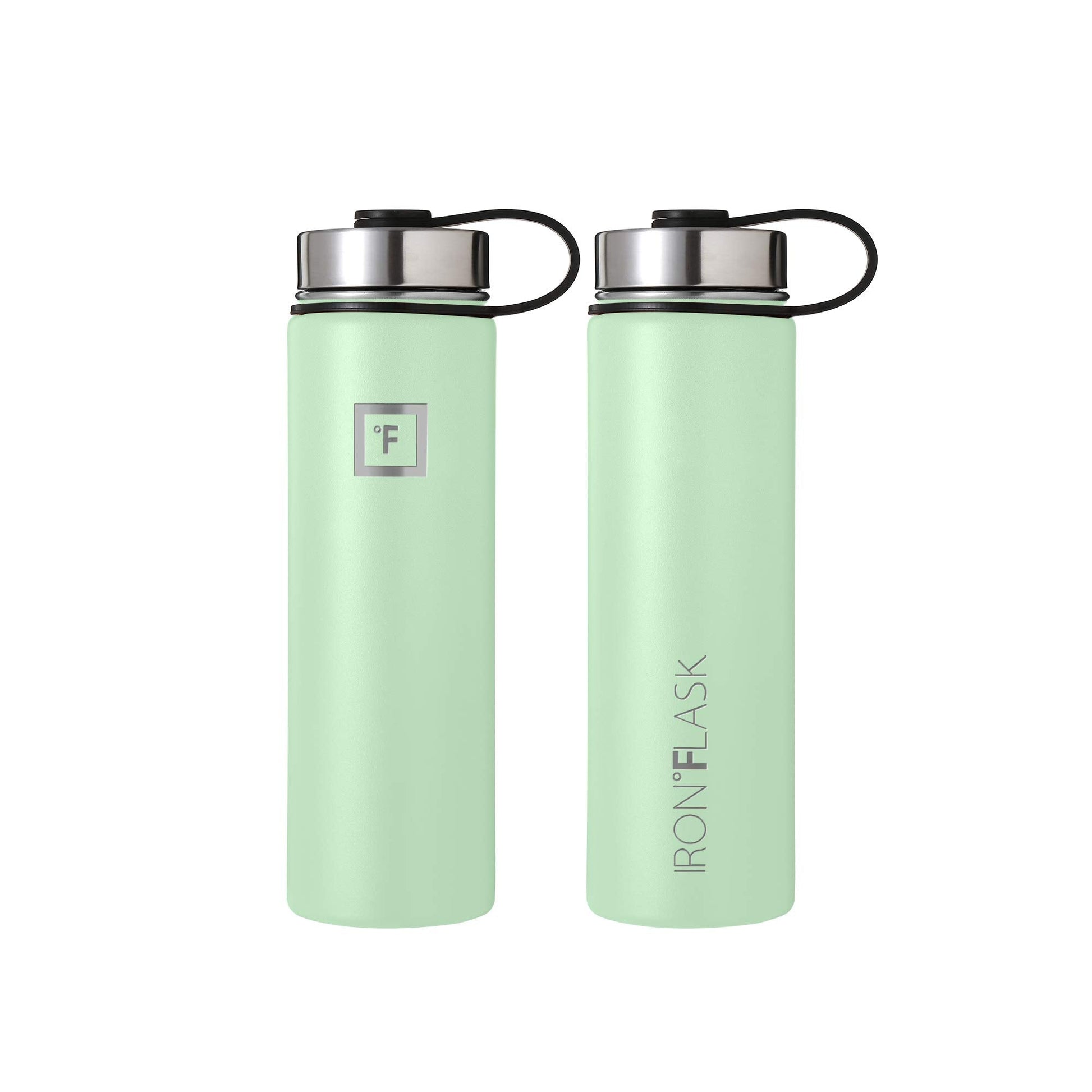 IRON °FLASK Camping & Hiking Hydration Flask, Wide Mouth, 3 Spout Lids, Stainless Steel Outdoor Water Bottle, Double Walled, Insulated Thermos, Metal Canteen - Mint, 22 Oz