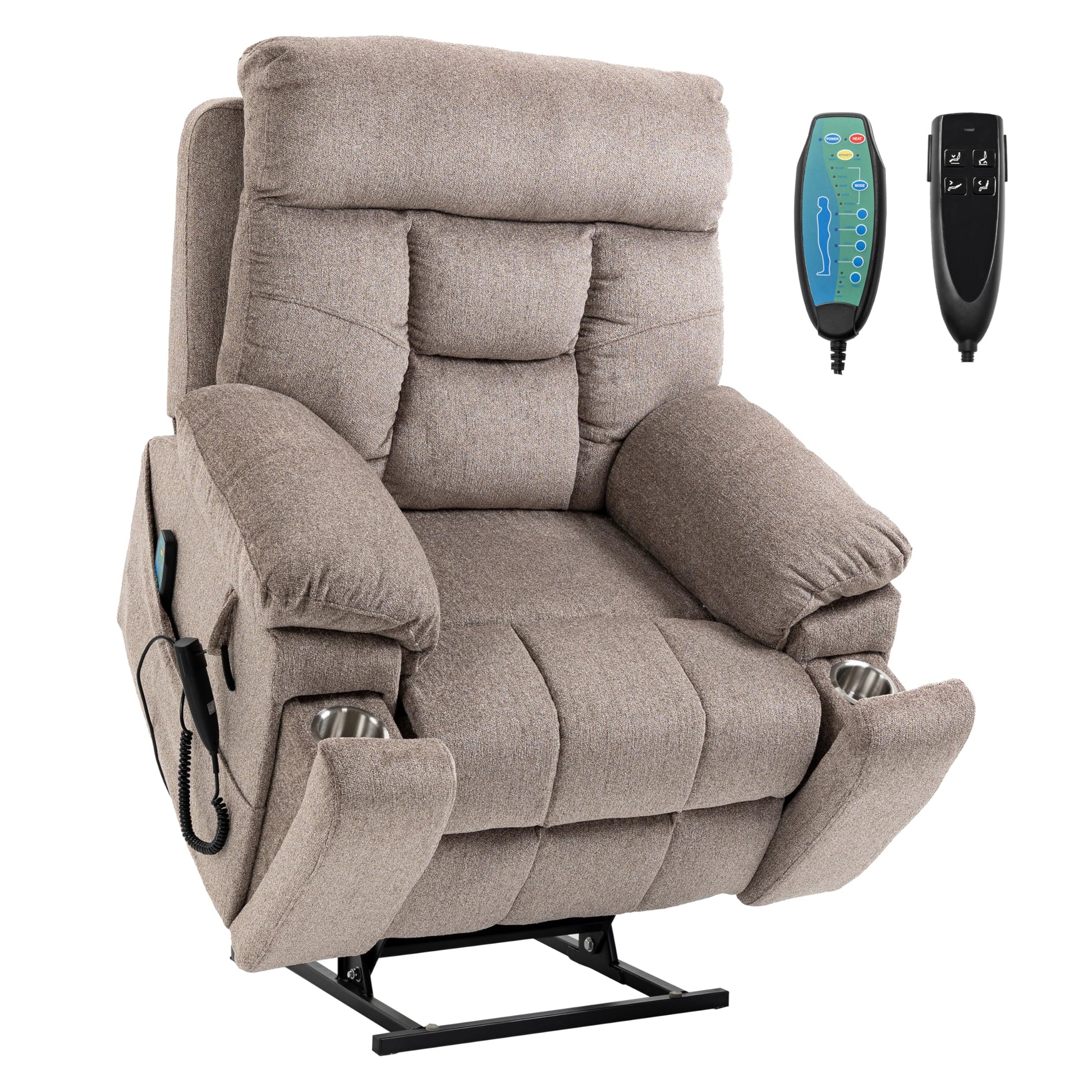 JIKFRIMA Dual Motor Power Lift Recliner Chair with Massage Heating for Adults Elderly, Electric Lift Chairs Lay Flat Recliners, Infinite Position, 2 Hidden Cup Holders