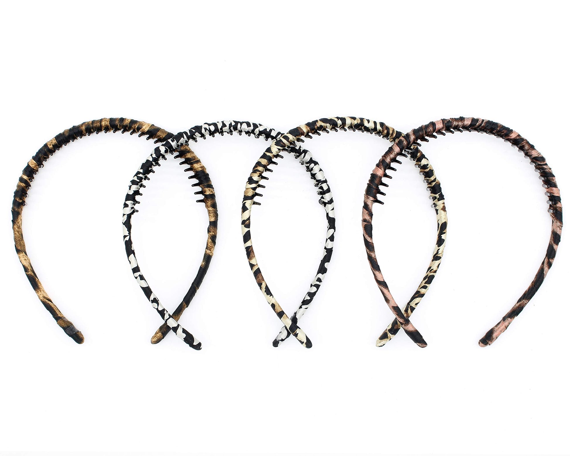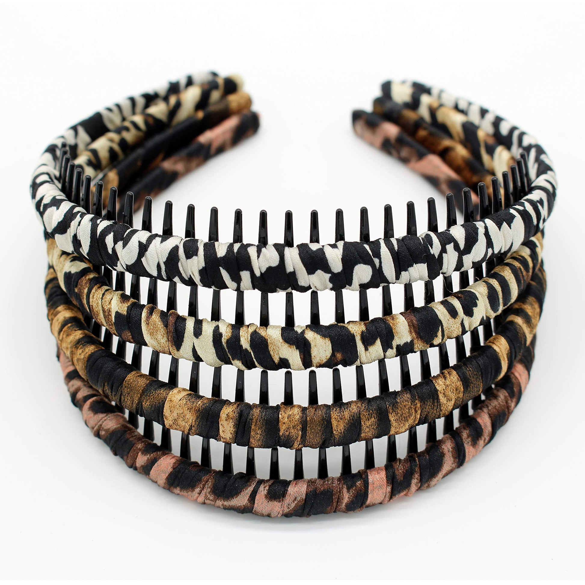 JOBAND Leopard Print hairbands,hair Headbands for women,Fashion Hair Accessories,Non-slip Resin comb teeth hair hoop ((Pack of 4))