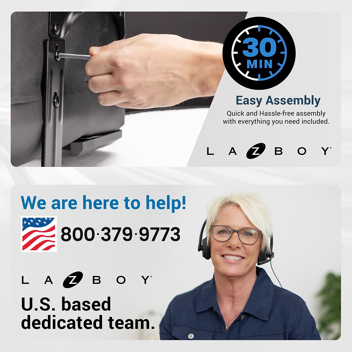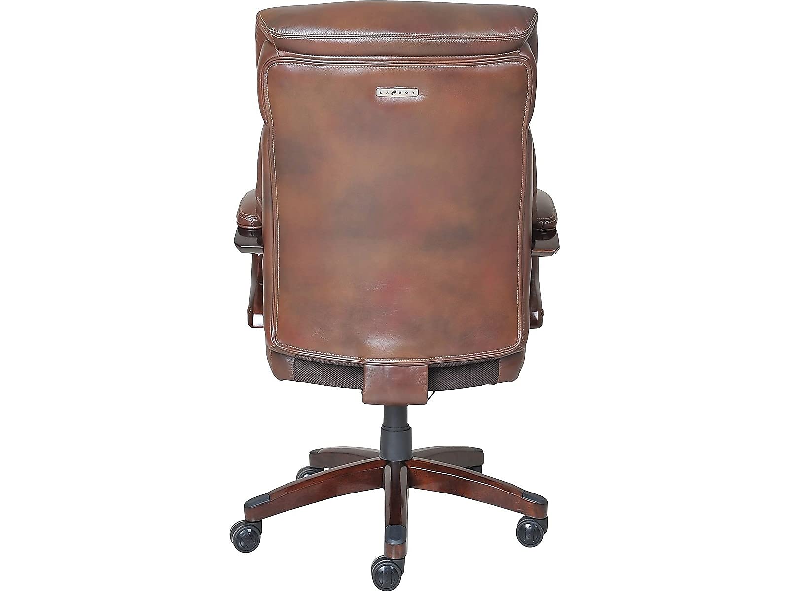 - Durable construction for years of useThe leather office chair is built with a heavy-duty wood base, designed for durability and elegance. The roast chestnut leather upholstery makes a stylish addition to any traditional home or office.Designed for all-day comfortThe La-Z-Boy Bradley Leather Office Chair offers comfortable seating for your workspace. The trademarked ComfortCore seat cushion construction and waterfall seat edge reduce leg pressure and fatigue. The upholstered arm pads add