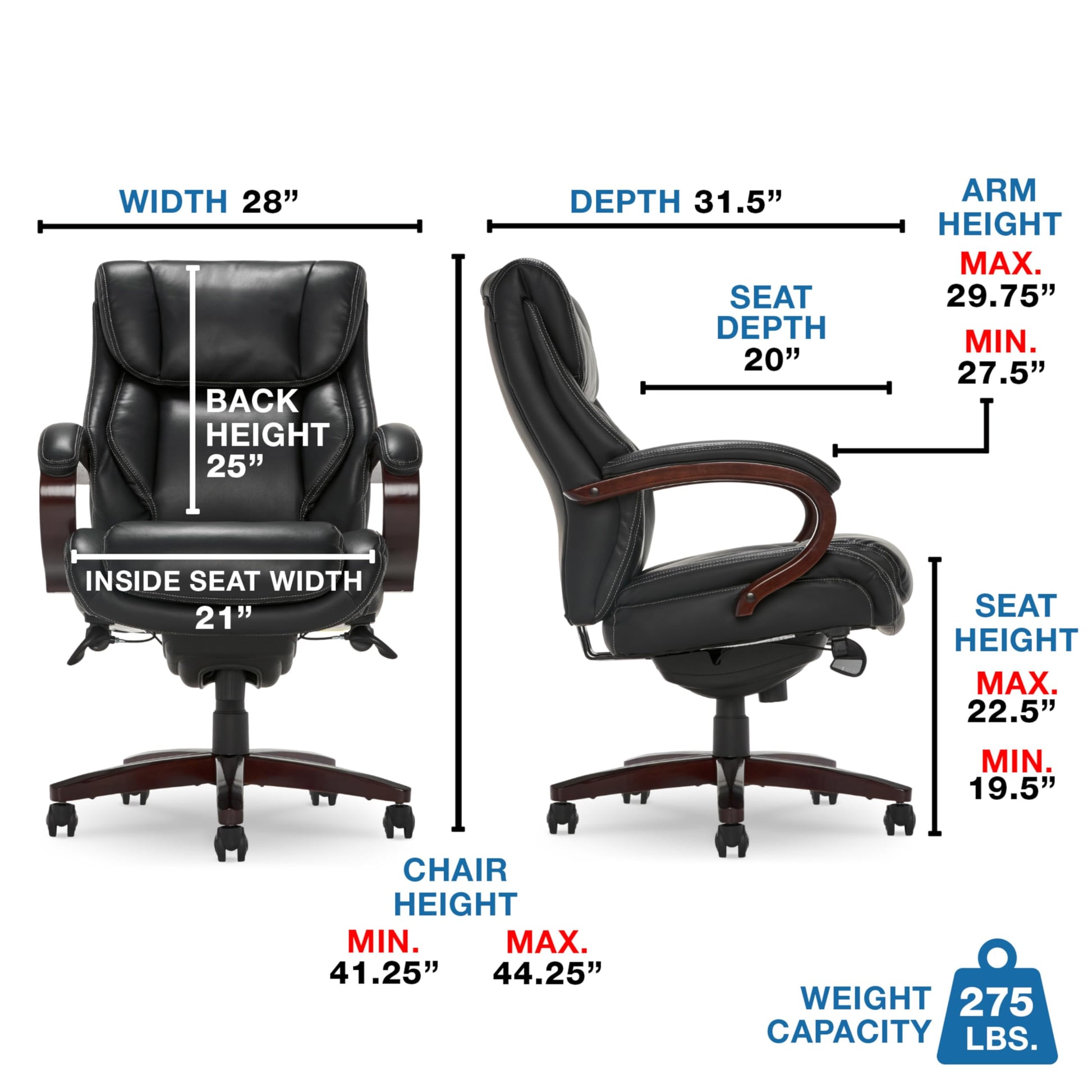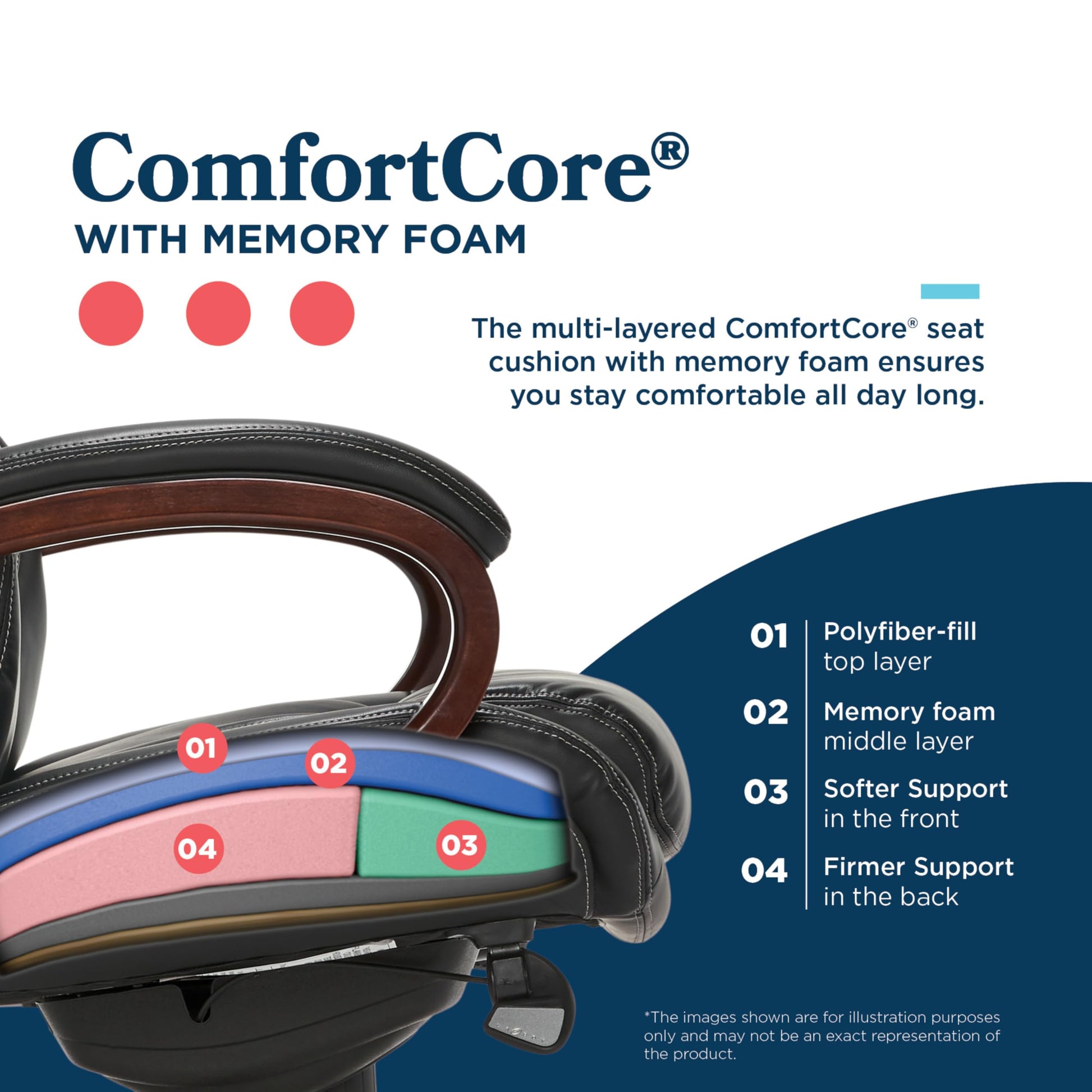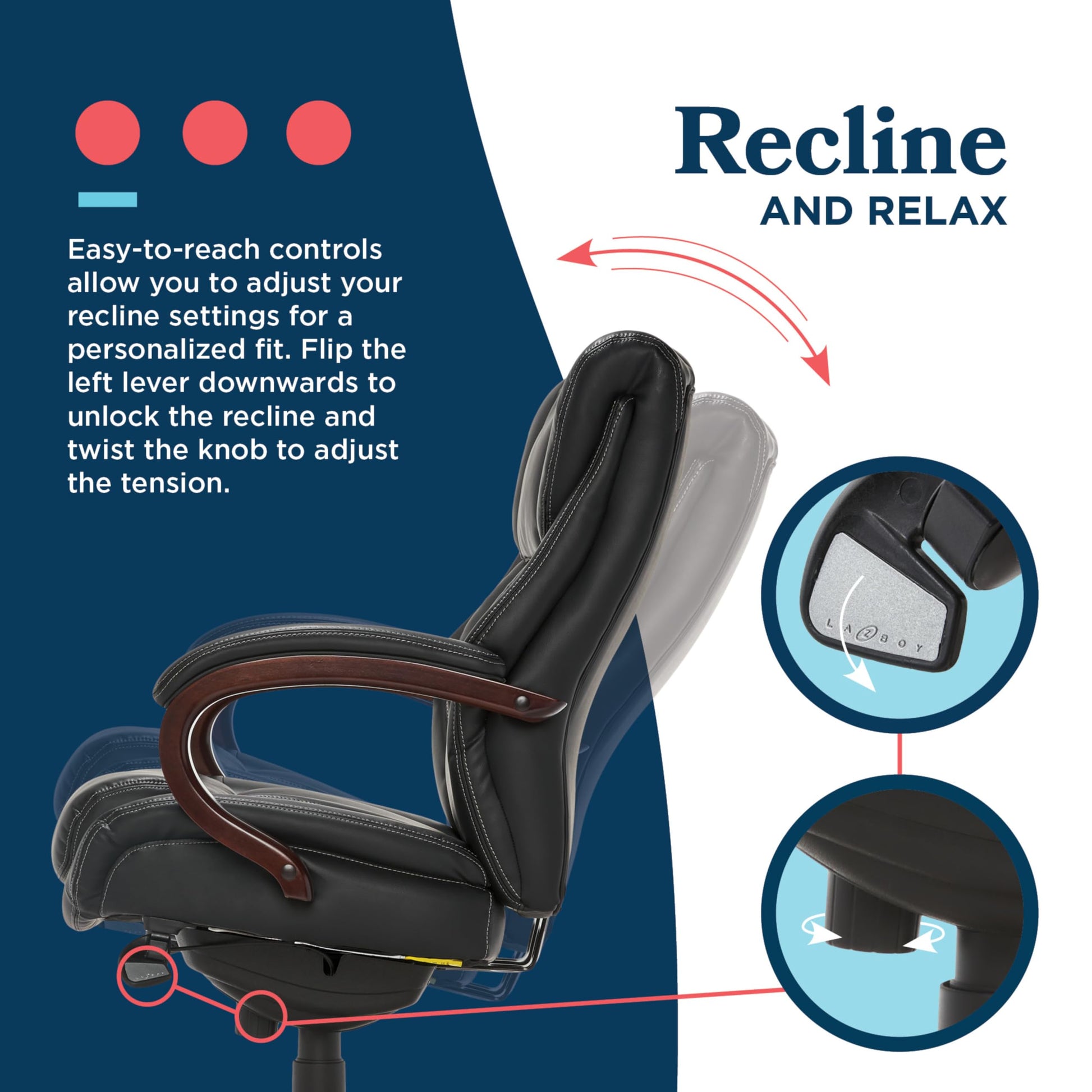 La-Z-Boy Bellamy Executive Office Chair with Memory Foam Cushions, Real Wood Arms and Swivel Base, Waterfall Seat Edge, Faux Bonded Leather, Black
