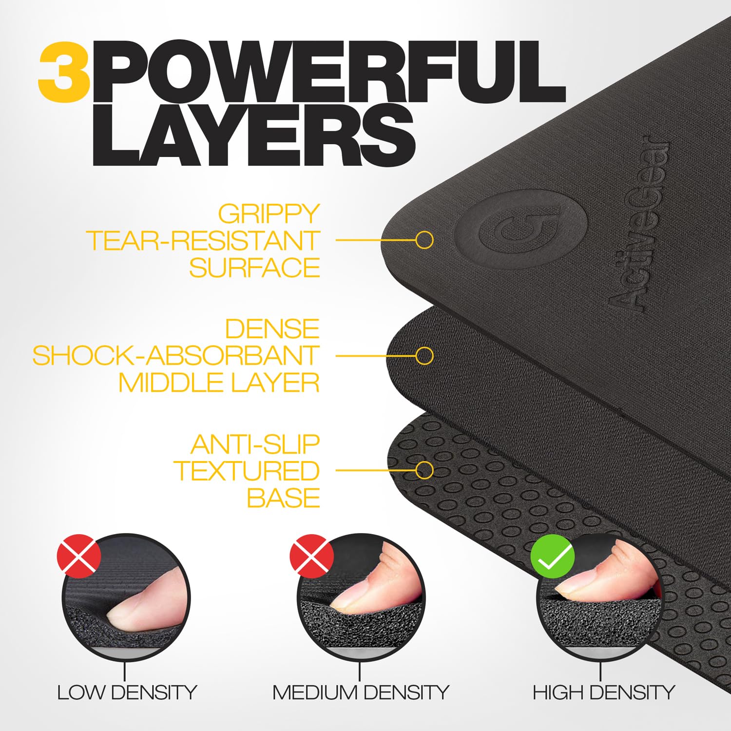 - Stability and Comfort: Whether you need an indoor exercise mat or gym flooring in your garage, our workout floor mats work great on carpet, concrete or a tiled floor. The double-sided slip-free grip design provides extra stability for exercise equipment.
