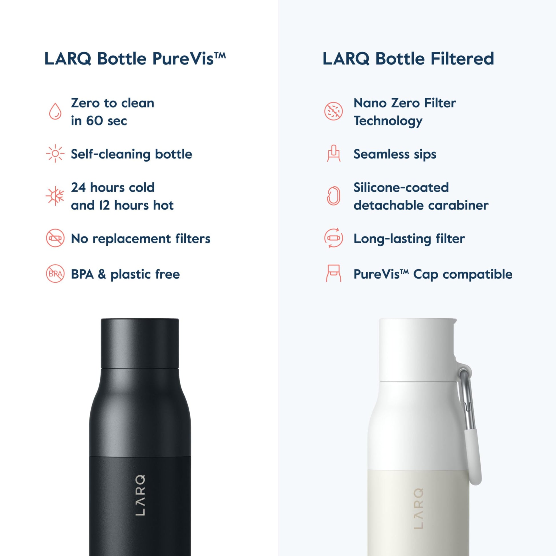 LARQ Bottle PureVis 25 oz - Self-Cleaning and Insulated Stainless Steel Water Bottle with UV Water Purifier and Award-winning Design | Reusable & Travel Friendly, Obsidian Black