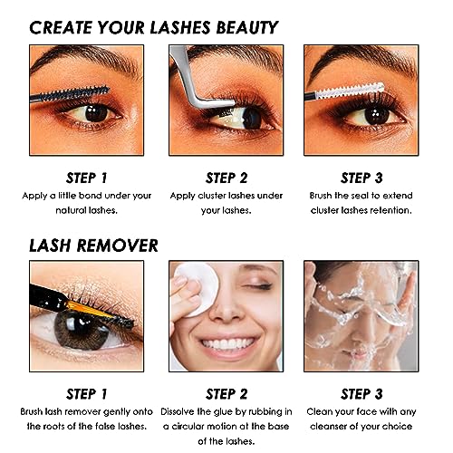- 🌼DIFFERENT MAKEUP STYLES, YOUR CHOICE: Use our lash clusters of varying lengths and volumes (10-16mm, 30D, 40D) to create a personalized eyelash style. Cluster lashes are versatile and suitable for various occasions, whether you're having a night out with friends, attending a special event, or at working day. You'll complete all these looks in no time!
