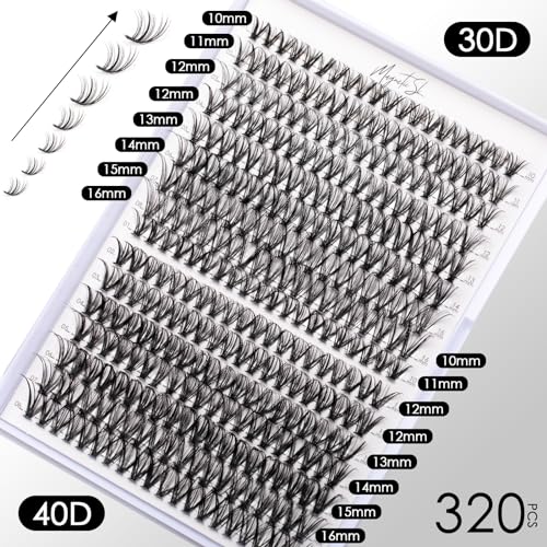 Lash Clusters DIY Lash Extensions Kit 320pcs Individual Lashes Clusters 30D 40D D Curl Eyelash Extension Kit with Applicator and Lash Bond&Seal,Clusters Lash Glue Remover Mix 10-16mm (30D+40D-320 KIT)