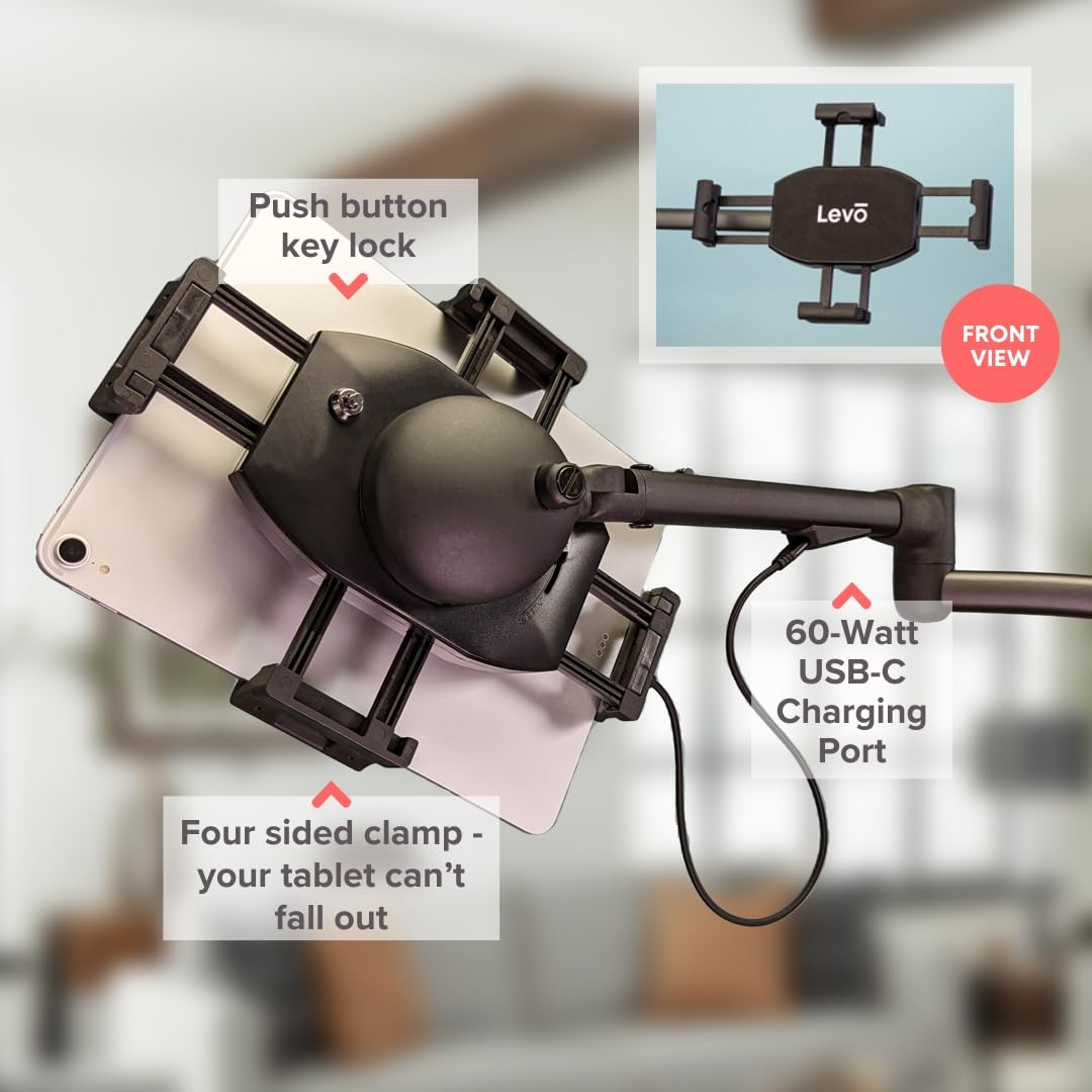 - REVOLUTIONARY TABLET EXPERIENCE: Break free from limitations with LEVO, unleashing the full potential of your tablet. No more being glued to your lap or limited by propped-up positions. Say goodbye to tablets resting on table tops or swaying on flimsy stands. Experience the ultimate tablet feature craze – it floats and charges at the perfect height and angle. Whether you sit, recline, stand, or lie in bed, elevate your tablet interaction to a whole new level of comfort and convenience.'