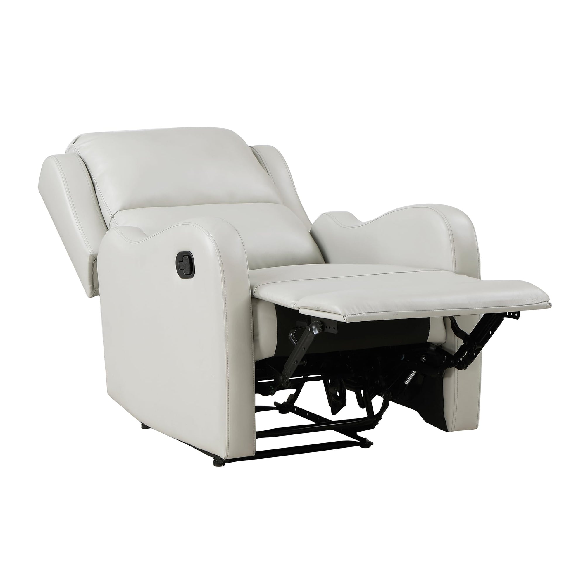 Details: Few recliners demand attention like this one. It's wrapped in high-quality faux leather upholstery that's sure to please. Every inch of the recliner is tailored to perfection, with clean, refined lines that take modern contemporary design to a new level. The single sofa chair is designed to provide an elegant and comfortable experience-the perfect arc of the handrail fits the ergonomics, making it more comfortable when you put your hand on it; retractable footrest easy to adjust the modes to meet your requirement; the deep seat of the glider recliner is nearly 22 inches providing an extremely comfortable seating experience. If you need a comfy chair for movie nights in the living room, this recliner chair has got you covered. With its seamless blend of form and function, this recliner is sure to become a favorite spot for relaxation in your home.