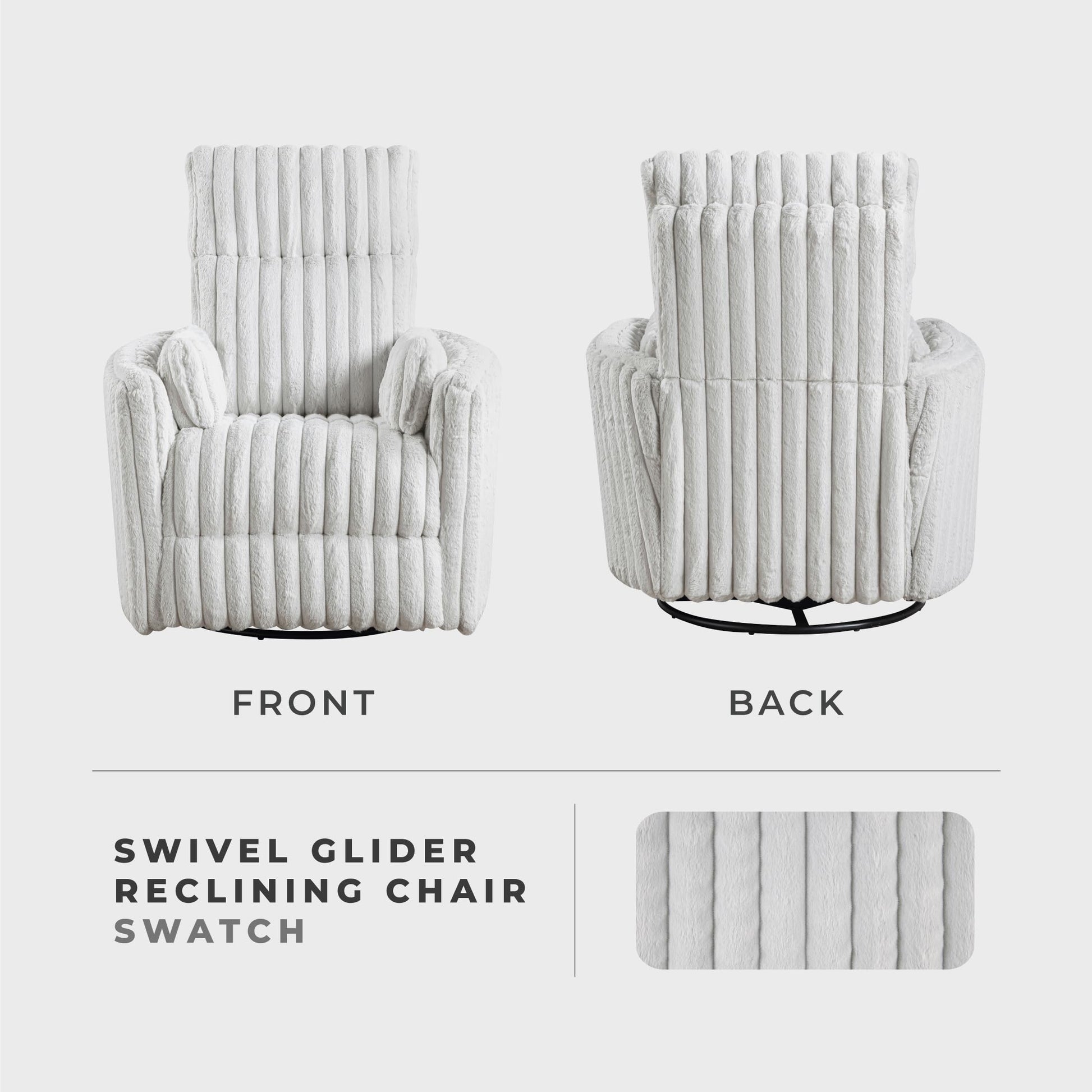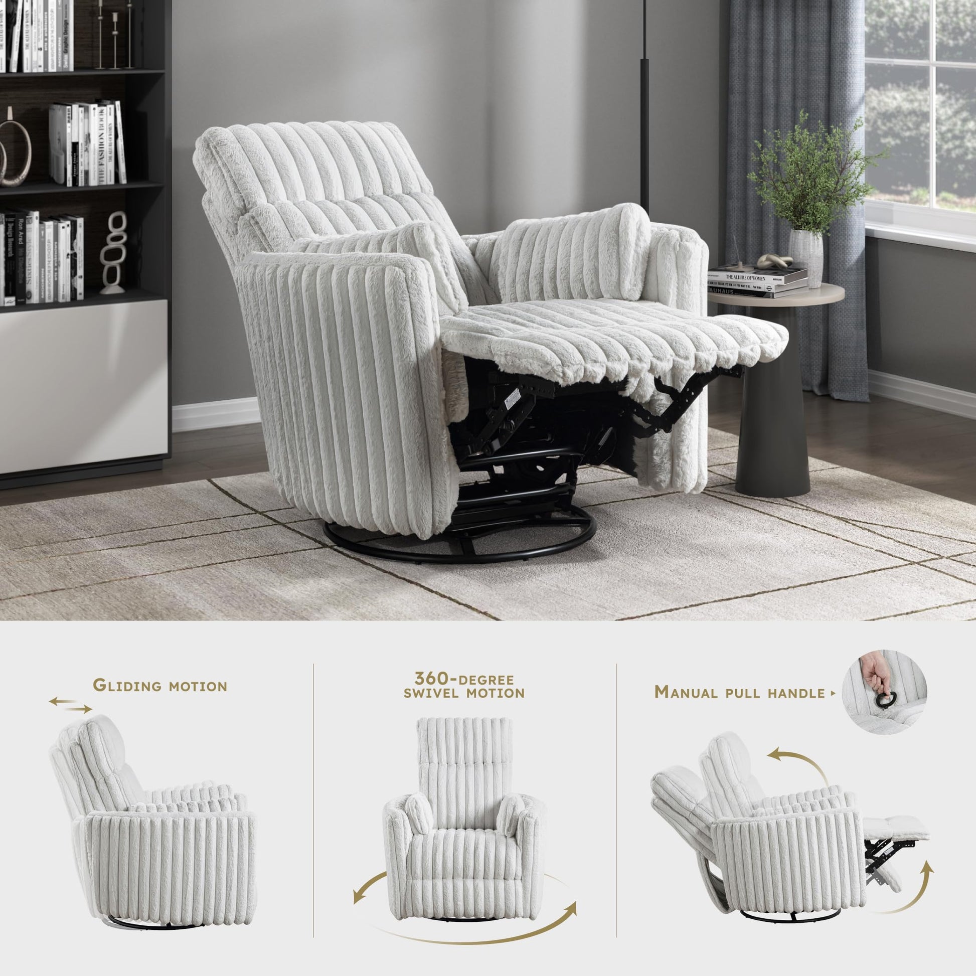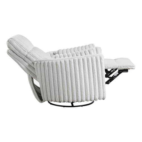 - [Transitional Charm] The streamlined design of this swivel glider recliner exudes sophistication, making it a perfect addition to any living room, bedroom, or nursery. Upholstered in durable corduroy fabric, it combines elegance with comfort.