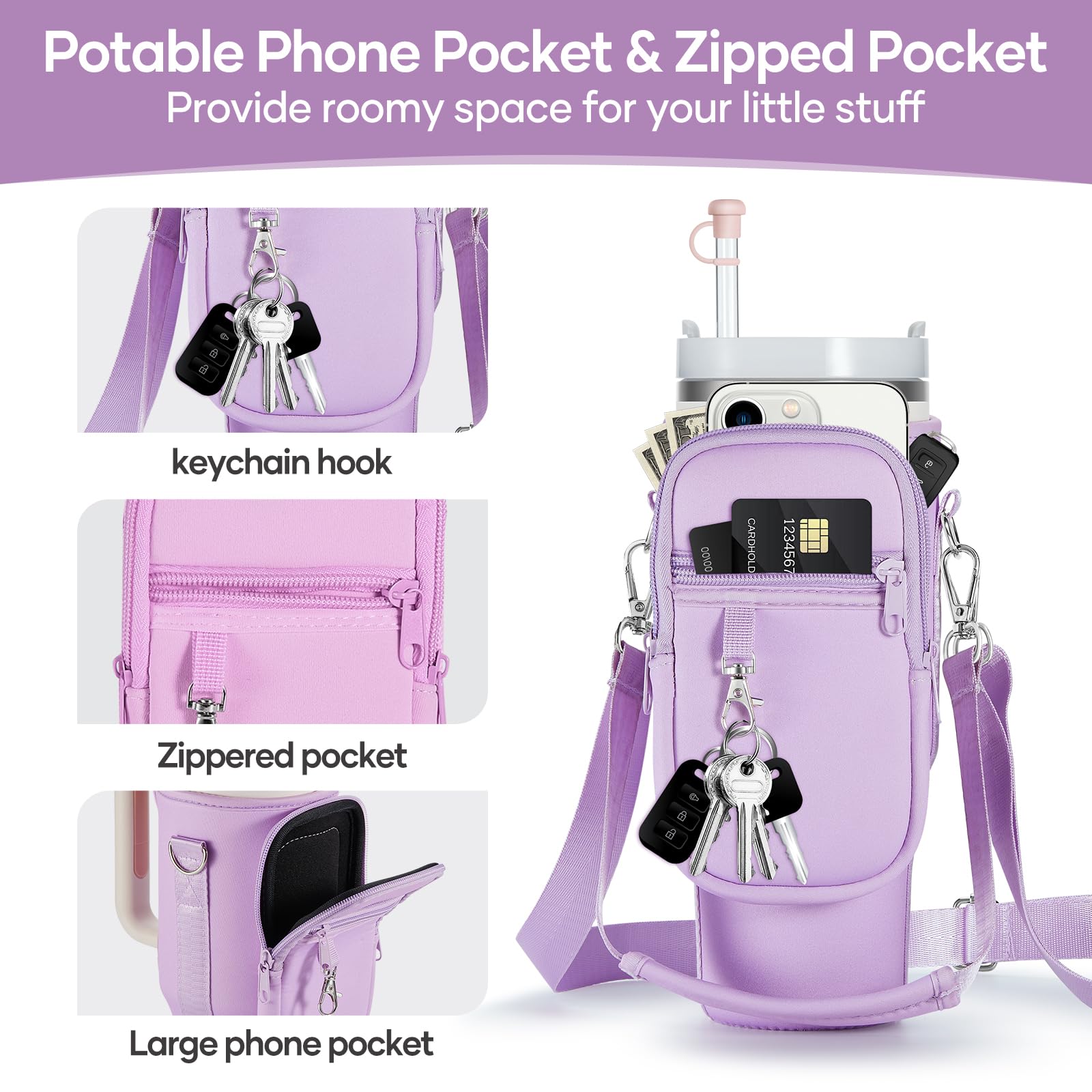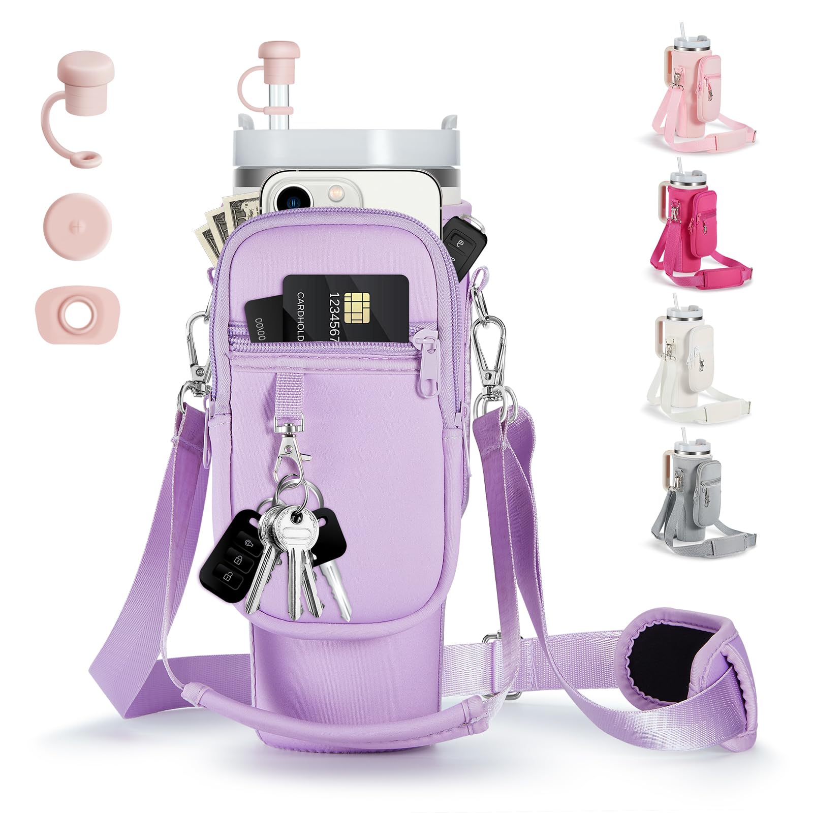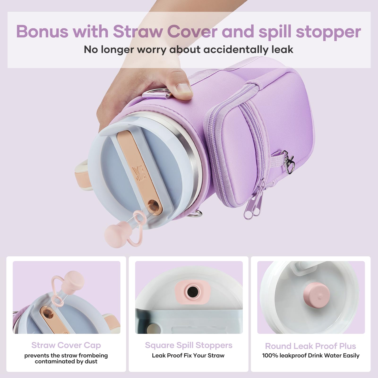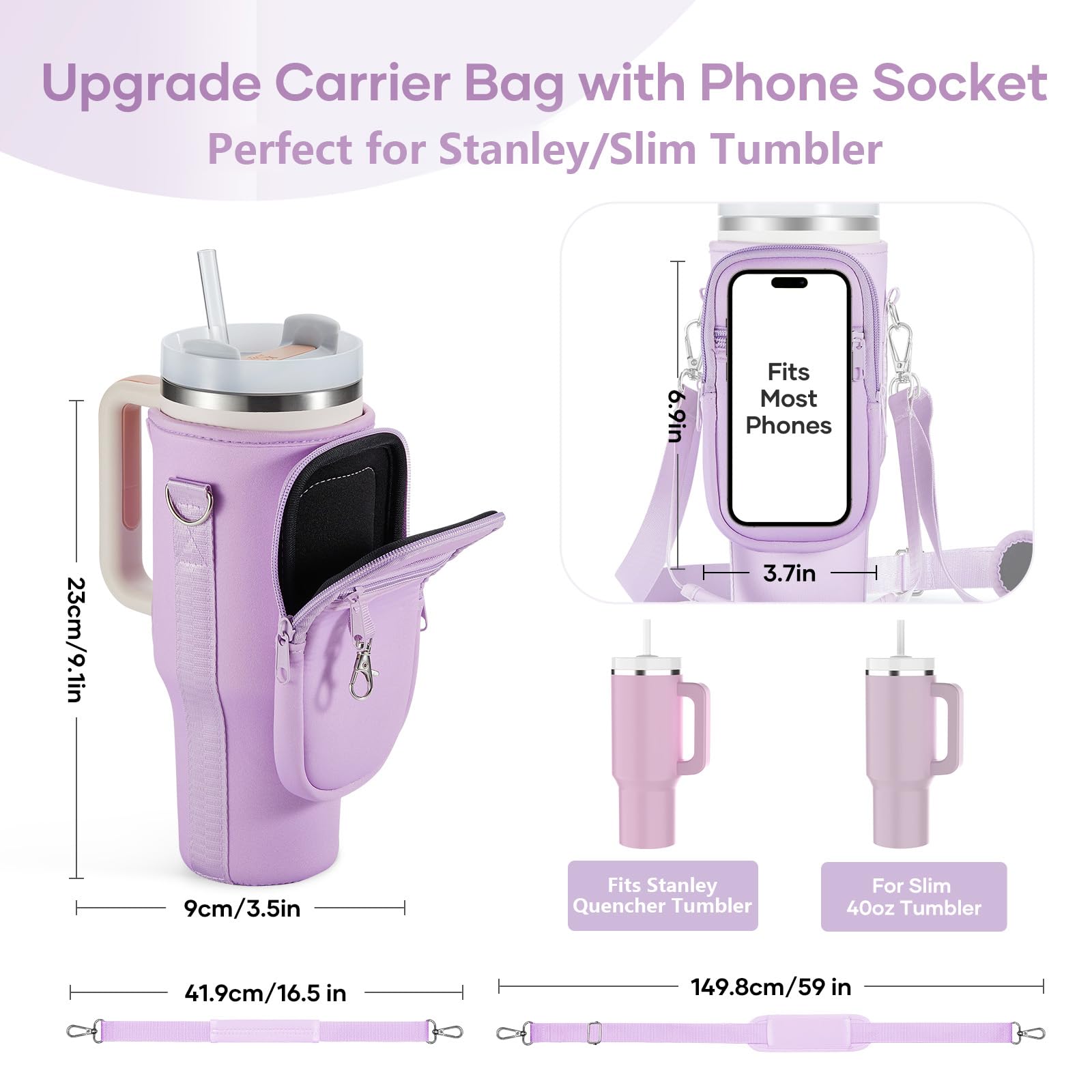- Perfect Accessories for Stanley Cup: This water bottle holder with strap is specially designed for Stanley Quencher H2.0 40/30oz and Stanley Adventure Quencher 40oz, this Carrier bag with strap fits your Stanley dupe like a glove, could free your hands, offering superior protection against drops and silence when setting down. Bonus with Straw Cover and Spill Stopper, these Stanley Cup accessories can keeps the straw and cup hygienic, enable your drink safely without spilling anytime.