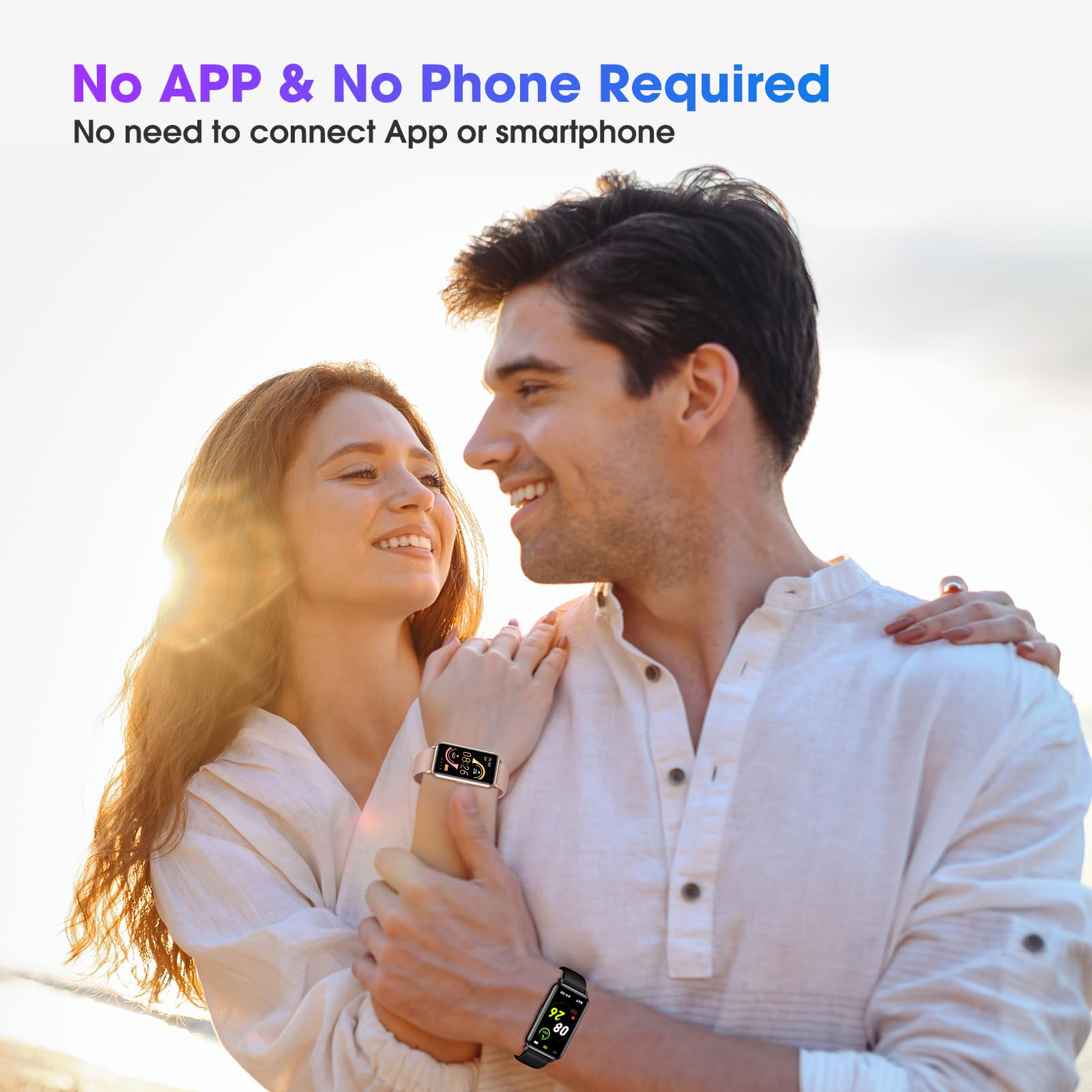 - ใ๐๐จ ๐๐ฉ๐ฉ & ๐๐ก๐จ๐ง๐ ๐๐๐ช๐ฎ๐ข๐ซ๐๐ใThis fitness tracker doesn't require any App or smartphone connections! It's as simple to use as a regular watch but smarter. Perfect for anyone who looking for an easy fitness tracker without the hassle of smartphone setups.