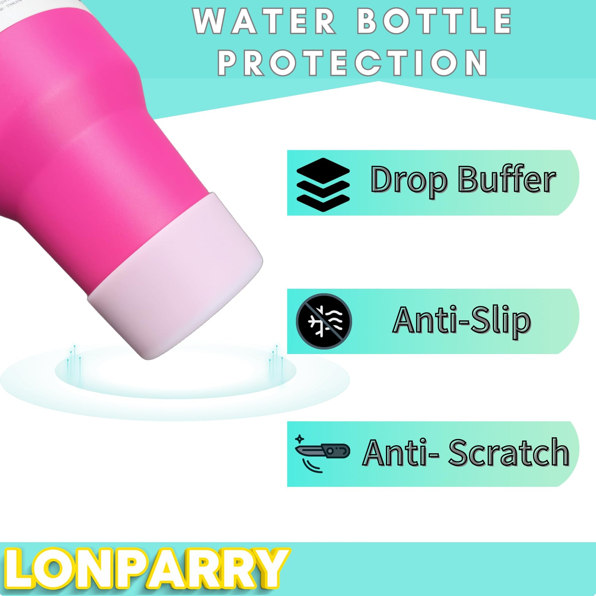 LONPARRY 4-Pack Silicone Boot for Stanley Cup Quencher IceFlow Rubber Bottom Sleeve Protector for Stanley Tumbler HydroFlask Bottle Bottom (Pink+Baby Pink+Clear Smoky Pink+Clear Peach Pink)