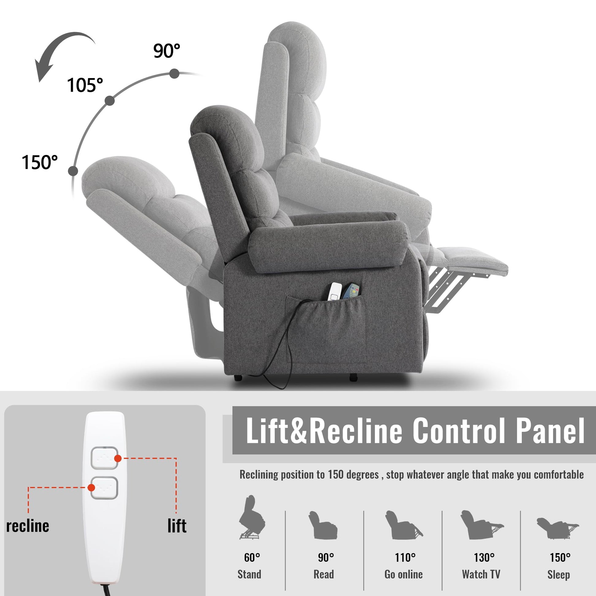 - Assistant for Elderly: We committed to protect the health of the elderly who chooses our recliner chair, it helps the senior stand up without adding stress to back or knees, it‘s easy to adjust position by pressing two buttons on the remote control