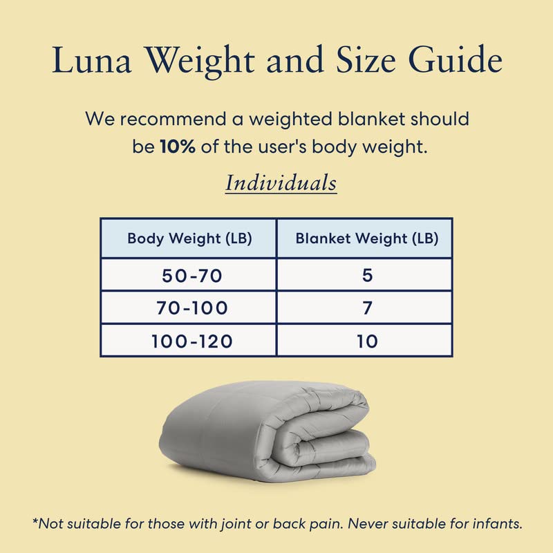 - โ ๐๐ฎ๐๐ ๐๐ฎ๐ฟ๐ฒ ๐ง๐ถ๐ฝ๐: Luna weighted blankets are easy to care for! For blankets 15lbs or less, simply machine wash cold on a gentle cycle or hand wash, and hang dry or tumble dry on low if needed. For heavier blankets over 15lbs, we recommend you to hand wash or spot clean only to ensure a long life span. Avoid machine washing and tumble drying to prevent damage, as most machines can only hold 10lbs - 15lbs. *** Always refer to your machineโs manufacturer manual for weight capacity.