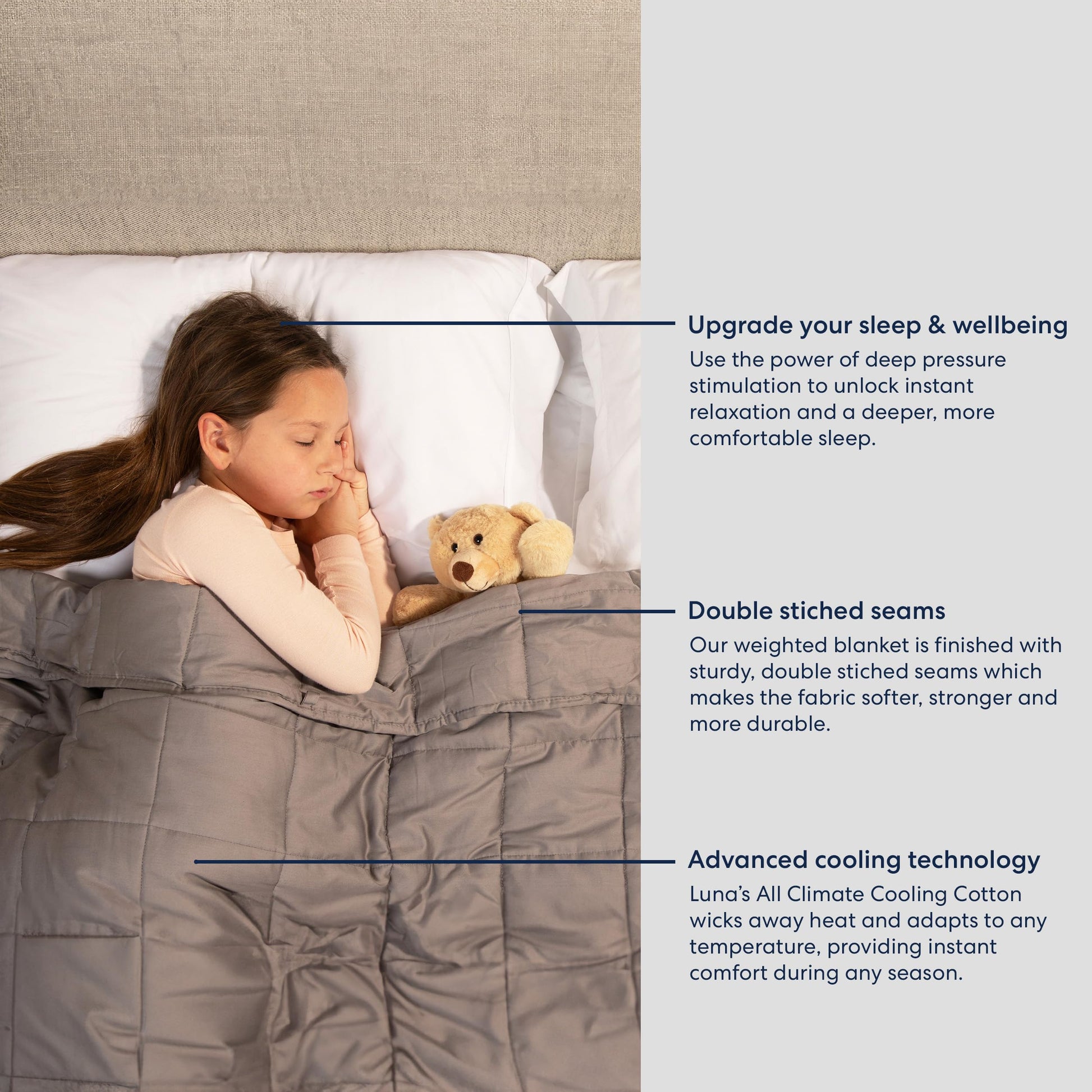 - ๐ ๐๐ฒ๐๐ ๐๐ฒ๐ฑ๐ฑ๐ถ๐ป๐ด ๐๐๐ฎ๐ฟ๐ฑ ๐ณ๐ฟ๐ผ๐บ ๐๐ผ๐ผ๐ฑ ๐๐ผ๐๐๐ฒ๐๐ฒ๐ฒ๐ฝ๐ถ๐ป๐ด: Embrace luxurious comfort with Luna Cotton Kids weighted blanket! Made from high-quality Breathable Oeko-Tex Certified Soft Cotton and filled with premium glass beads, enjoy deep touch pressure stimulation for a relaxing, calming effect.