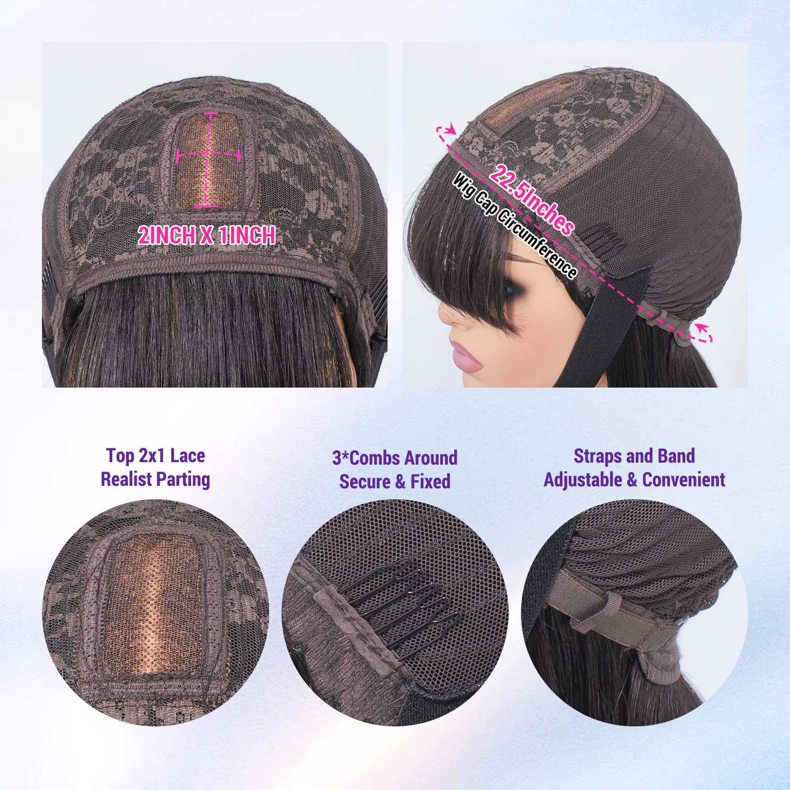 - 【Circumference】 Average 22.5 inches' cap size, with combs inside and straps, can be adjusted to fit most head sizes.