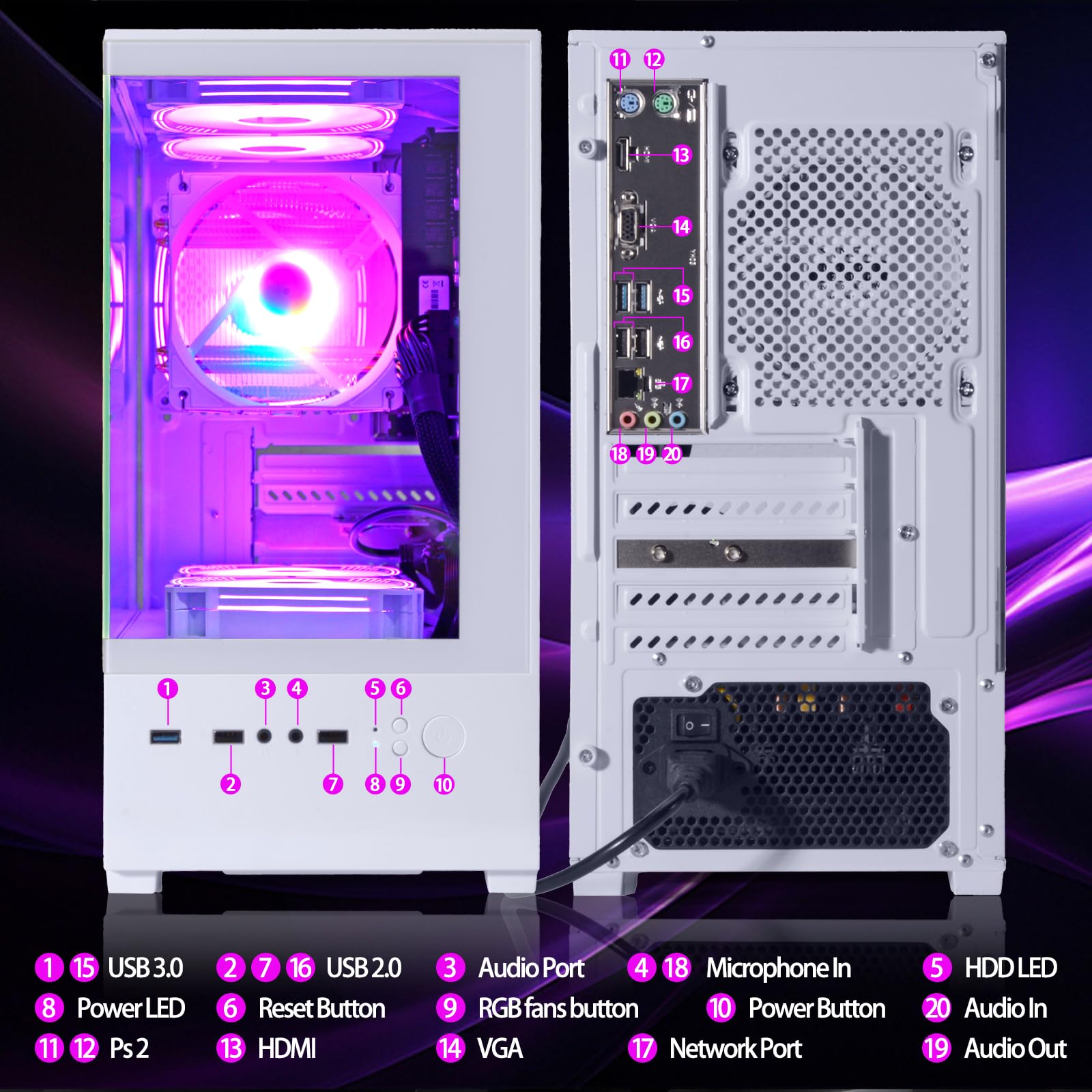 LXZ Desktop PC Computer AMD Ryzen 7-5700G 8 core 3.9GHz, 16G DDR4 RAM, 512GB NVME SSD, Tower Computer with Power Supply 400W for Home and Office (White)