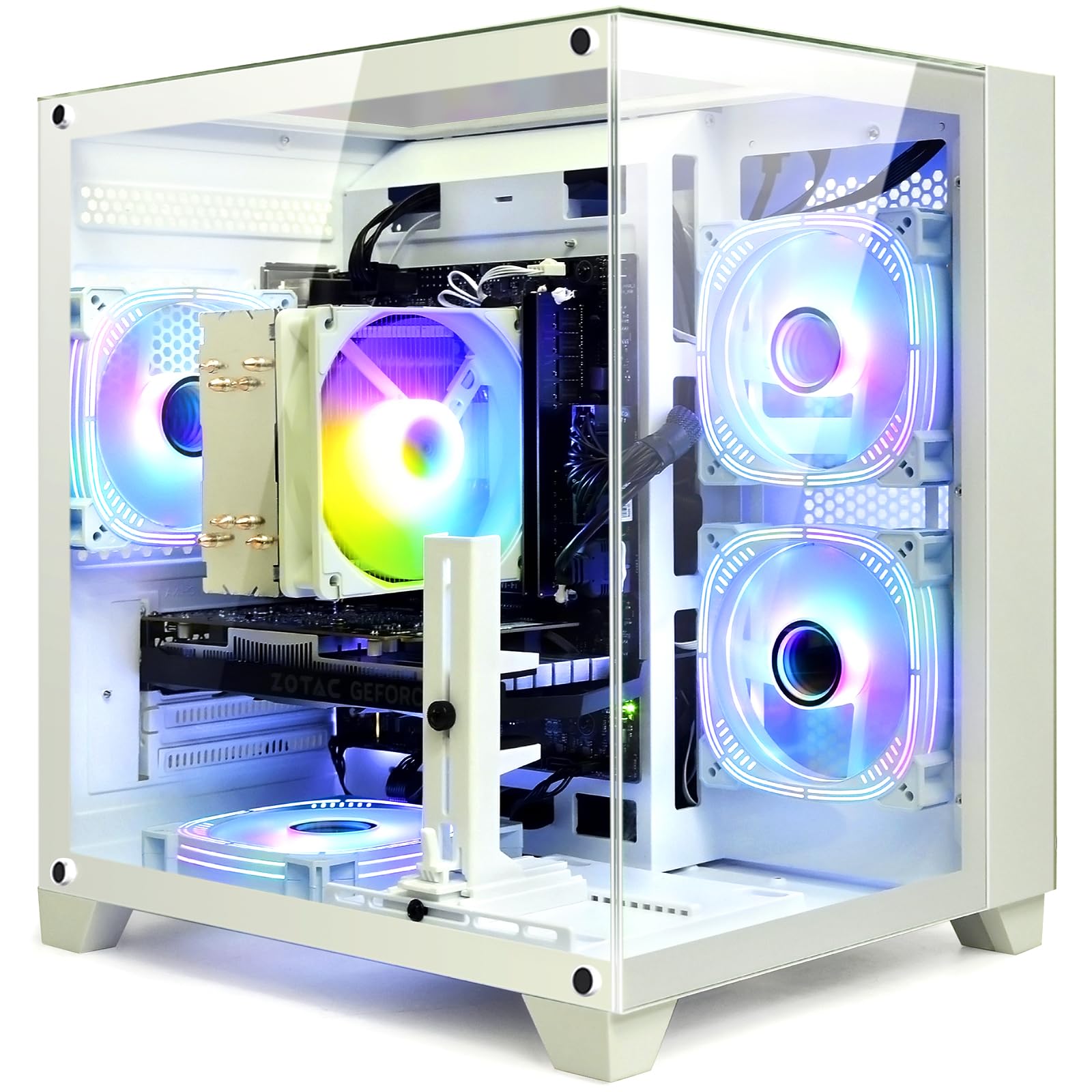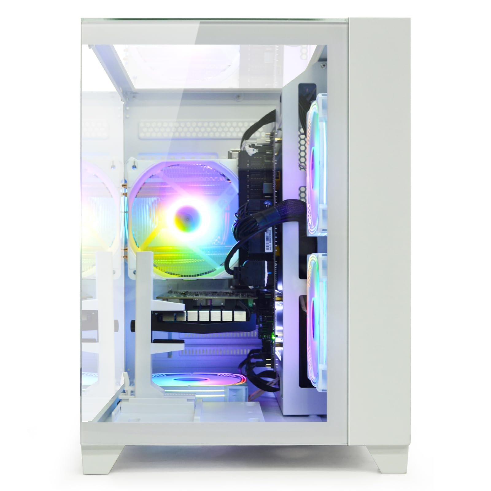 - Design & Extras: The PC is equipped with 5× RGB RGB fans and lighting effects. These lights can be set according to the user's preference, adding a splash of colour to the PC and enhancing the overall visual effect. The chassis is designed with glass panel on three sides, which allows users to visualise the internal hardware layout and lighting effects.
