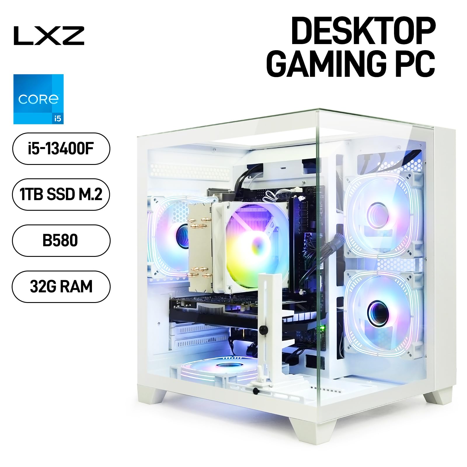 LXZ Gaming Desktop PC Core i5-13400F & Arc B580 12GB GPU, 32GB RAM, 1TB SSD - High Performance Desktop Computer for Gaming/Design (White)