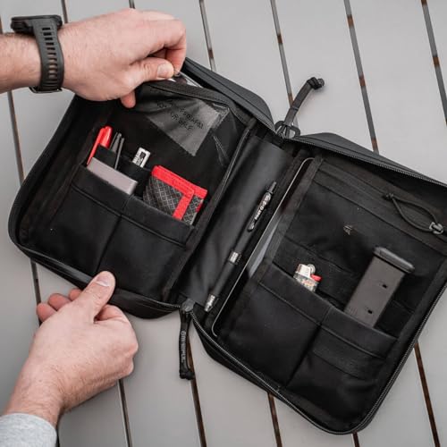 Details: The DAKA Utility Organizer, Large is a durable, weather-resistant, compact case designed to protect, store, and secure your important everyday use gear. Reinforced by its semi-rigid construction, the Utility Organizer, Large provides more room to protect important items, making it the perfect admin pouch, travel kit, large electronics case, range accessory kit, and storage kit for just about anything you want to have handy. The exterior features a water-resistant YKK AquaGuard zipper with a large zipper pull for easy access and closure. The oversized pull tab and carabiner pass-through keep your gear at hand when you need it, and the pen dot matrix makes ID of what’s stored within easy. The left interior panel consists of one main back-side pocket, one mesh pocket, four 1.5-inch stretch molle, and two stretch pockets. The right interior panel consists of one main back-side panel for notepad storage, one mesh zippered pocket, four 1.5-inch stretch molle, and two stretch pockets. Like all our DAKA products, the Magpul DAKA Utility Organizer, Large is made from polymer-infused textiles that are RF-welded on every seam for absolute strength. The construction methods and materials used in the DAKA line mean that our storage solutions are at home in a variety of hard-use outdoor applications, yet they’re stylish enough to be front and center in your vehicle or office.
