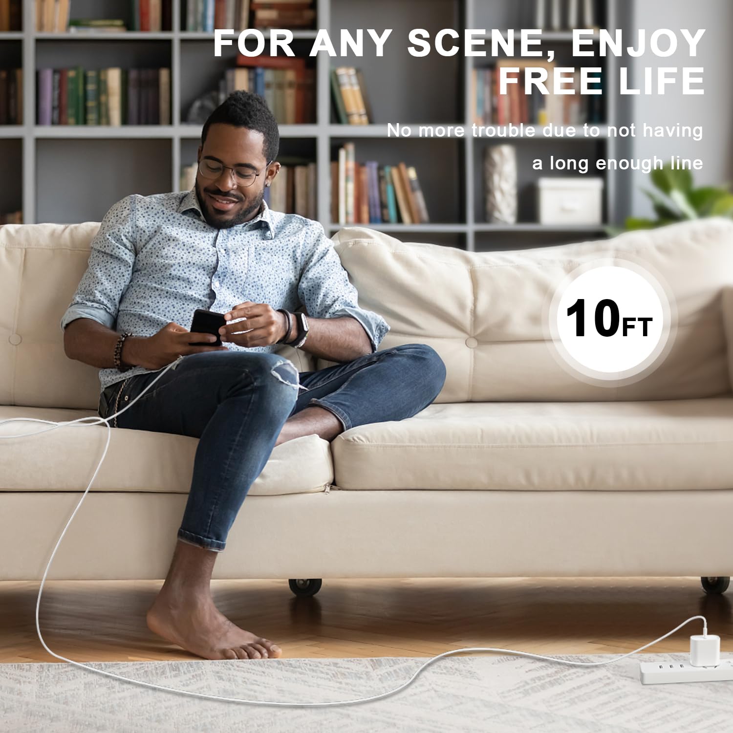 - 【10FT Long USB C Fast Charging Cable】 Made with the original official Chip, this 10 ft long iPhone 16 15 charger USB C cable ensures 100% compatibility with your new devices, 100% high-speed charge and 480 Mbps data transfer speed. Tangle-free 10 Feet length is convenient for usage while charging and syncing at home/office/travel in bed, hotel rooms, and more.
