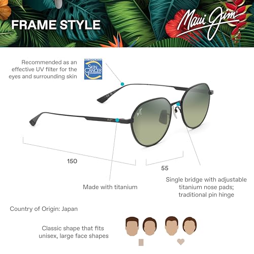 Maui Jim Kaulana AF Round Sunglasses, Matte Black/Maui Ht Polarized, Large