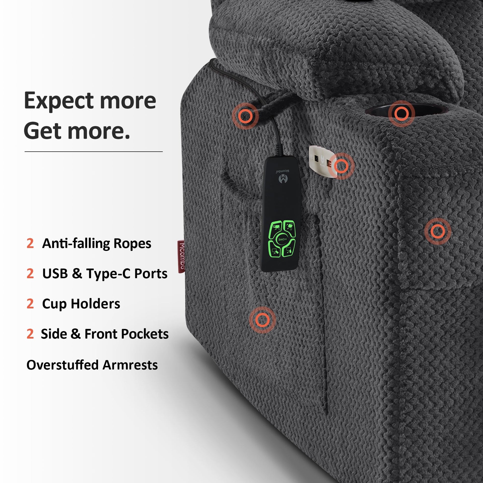 MCombo Dual Motor Power Lift Recliner Chair with Massage and Heat for Elderly People, Infinite Position, USB Ports, Cup Holders, Fabric 7890 (Medium, Dark Gray)