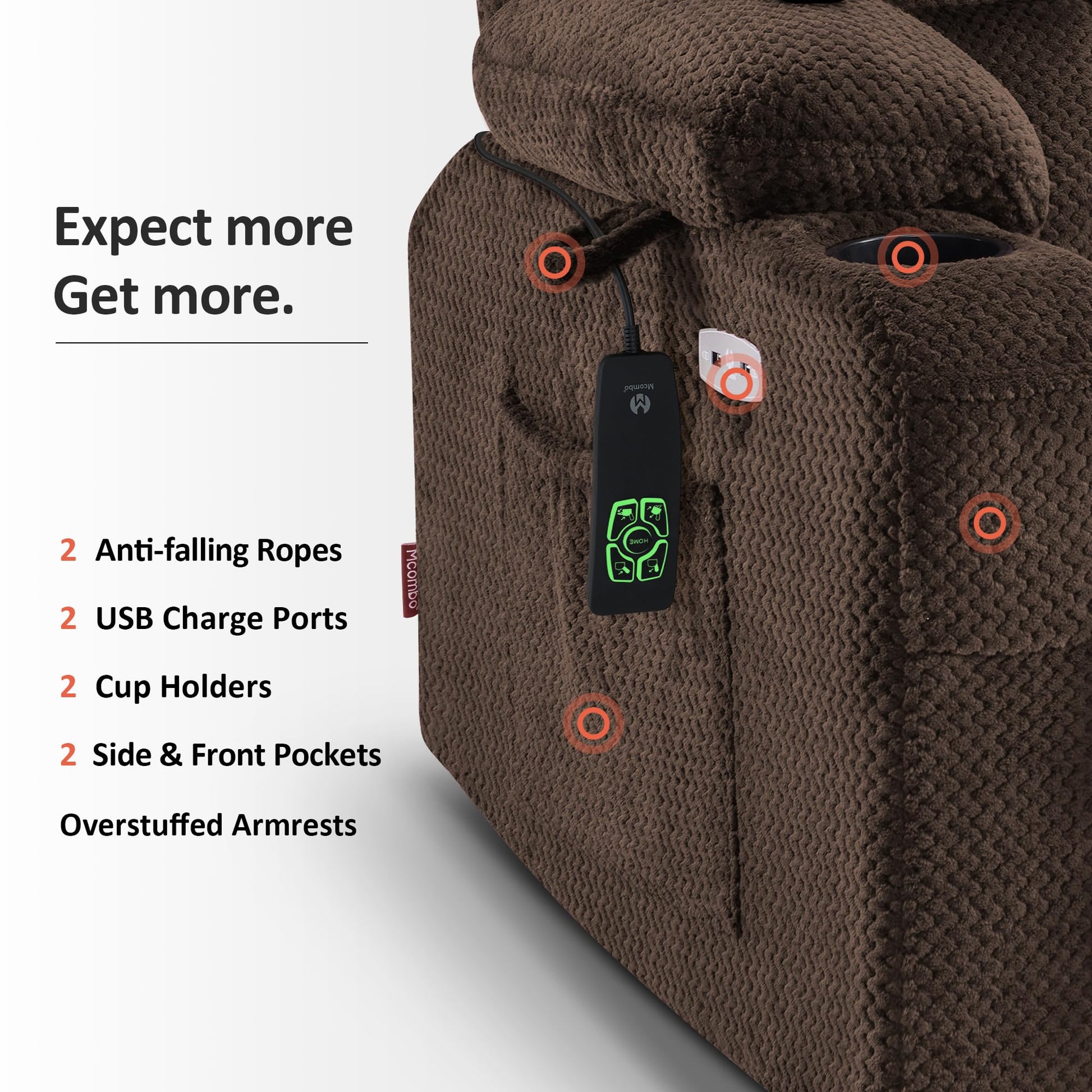 MCombo Dual Motor Power Lift Recliner Chair with Massage and Heat for Elderly People, Infinite Position, USB Ports, Cup Holders, Fabric 7890 (Medium, Mocha)